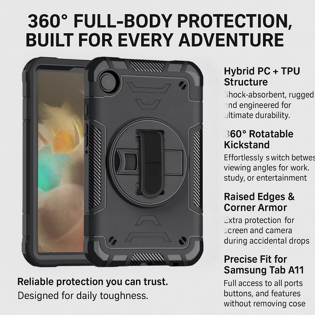 The built-in rotating hand strap allows effortless one-handed operation, perfect for students, field workers, teachers, and professionals who require tablet mobility and stability.