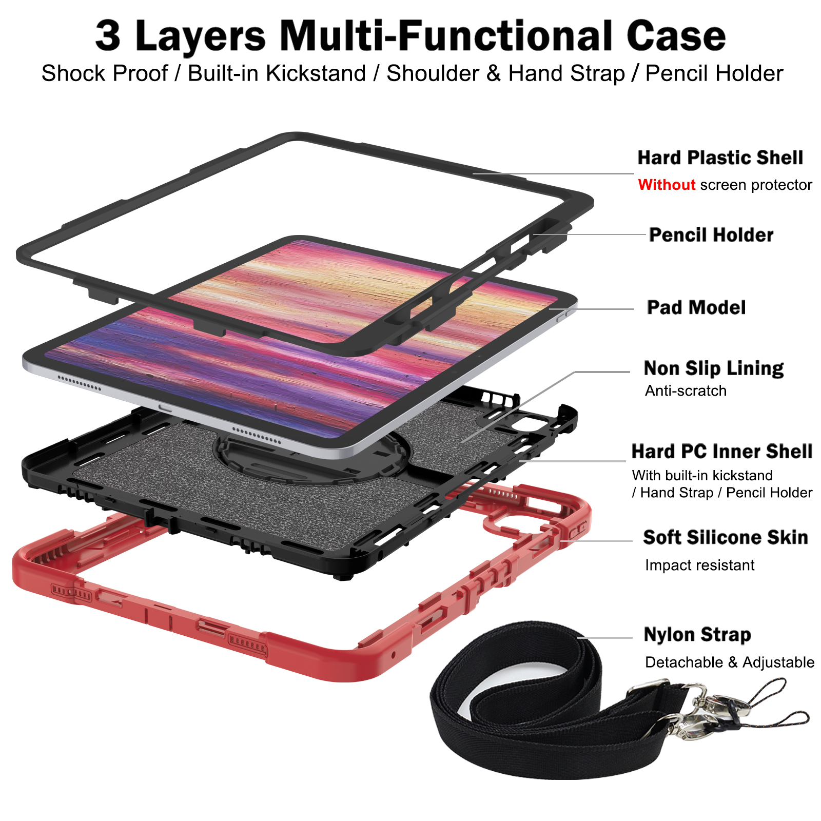 Protection: Full-body 3-layer shockproof rugged design