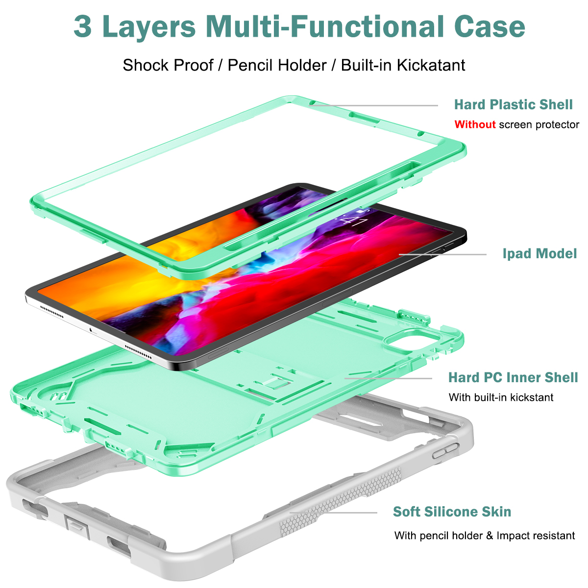- Rugged Shockproof Protection: Durable exterior shields your iPad from everyday damage with reinforced edges and corners for maximum impact resistance.