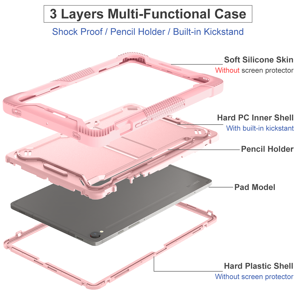 Designed for users who need strong but elegant protection, this light pink case wraps your Samsung 11'' tablet in triple-layer full-body defense, with a hidden kickstand and stylus holder.