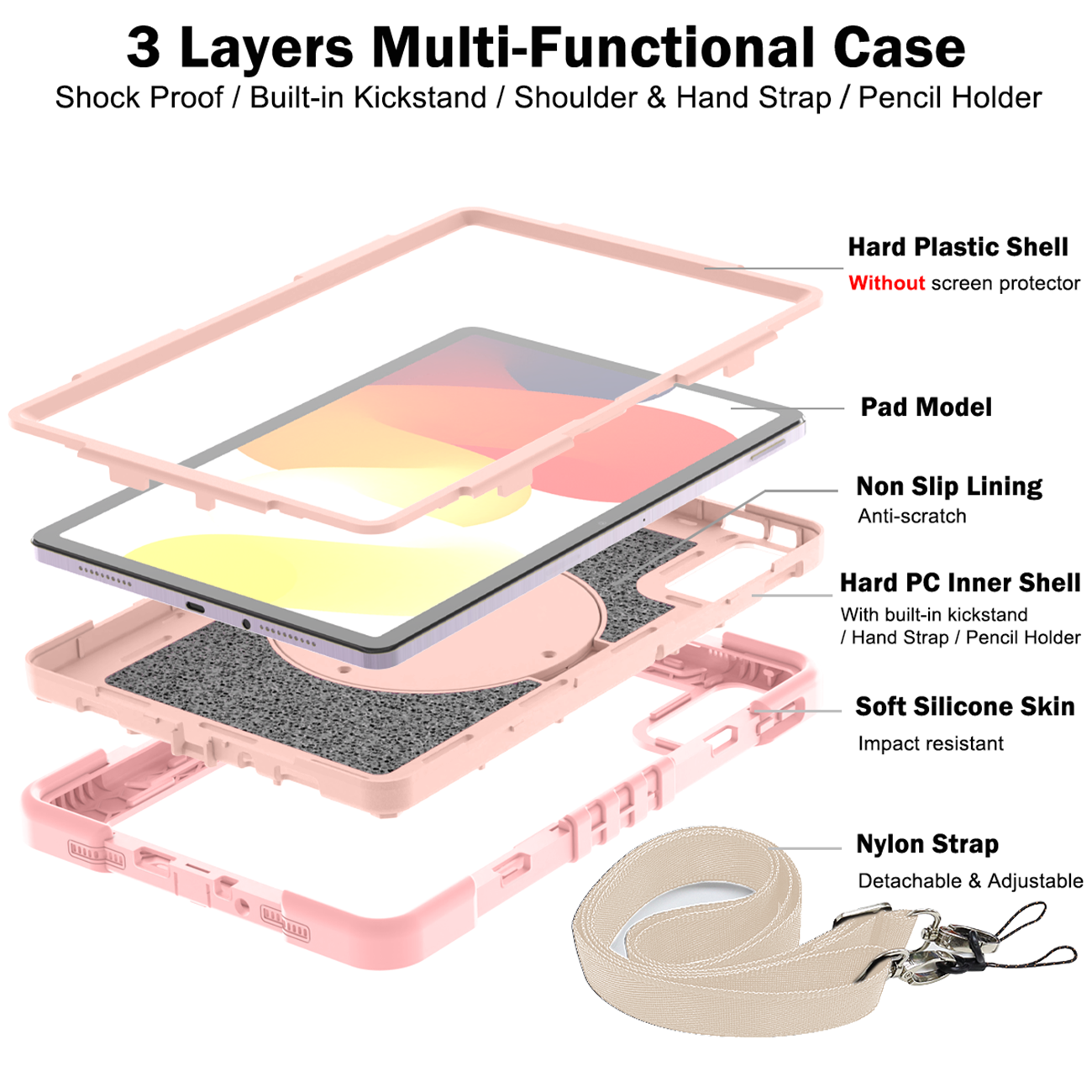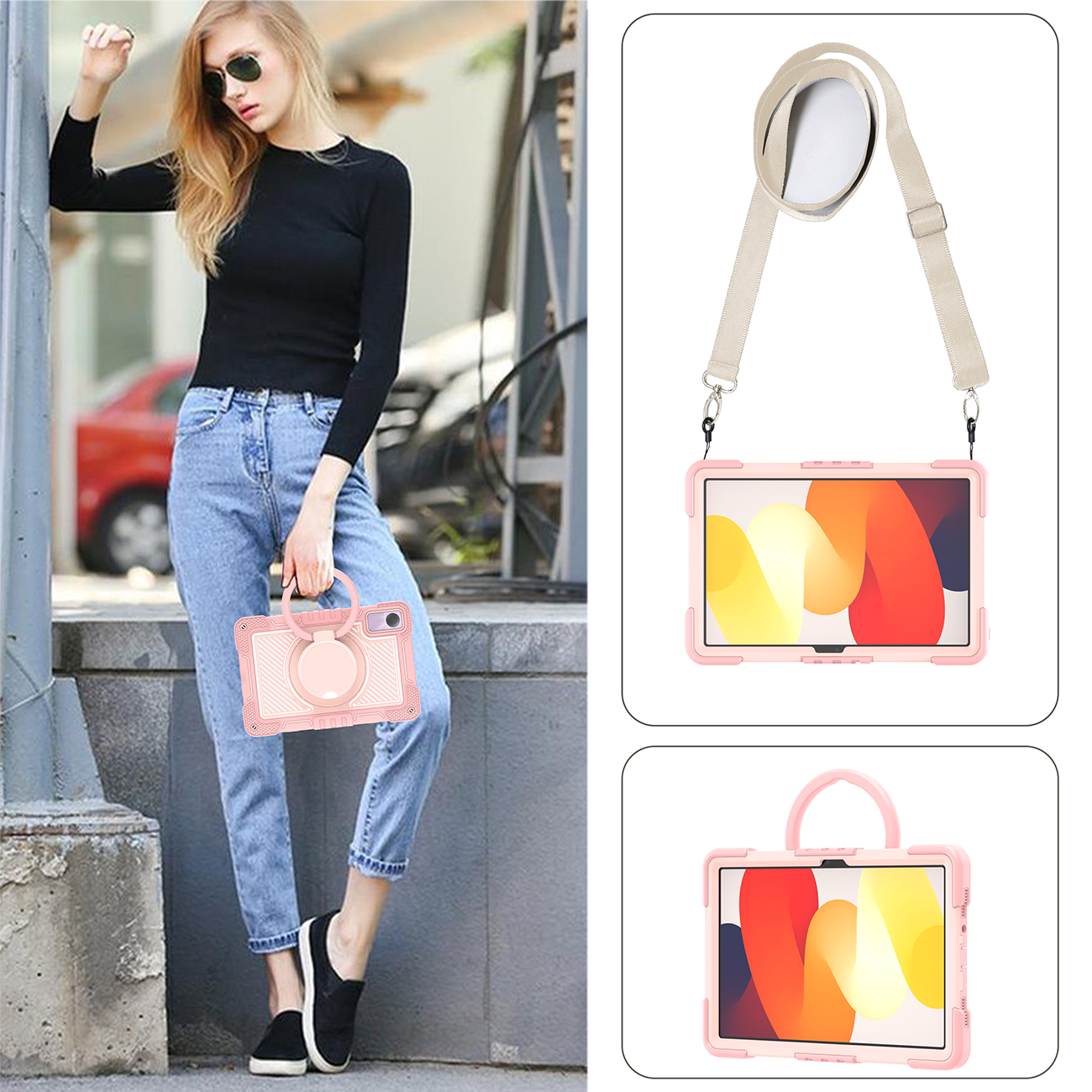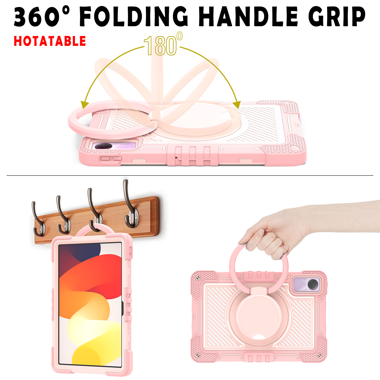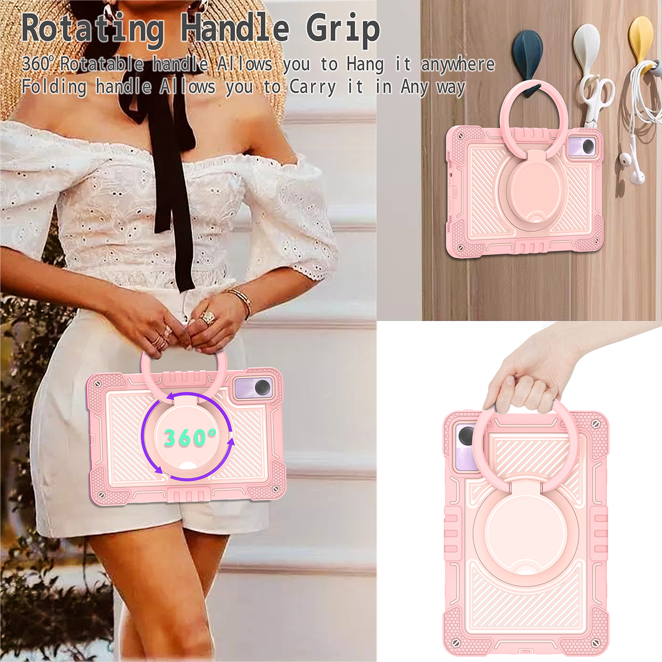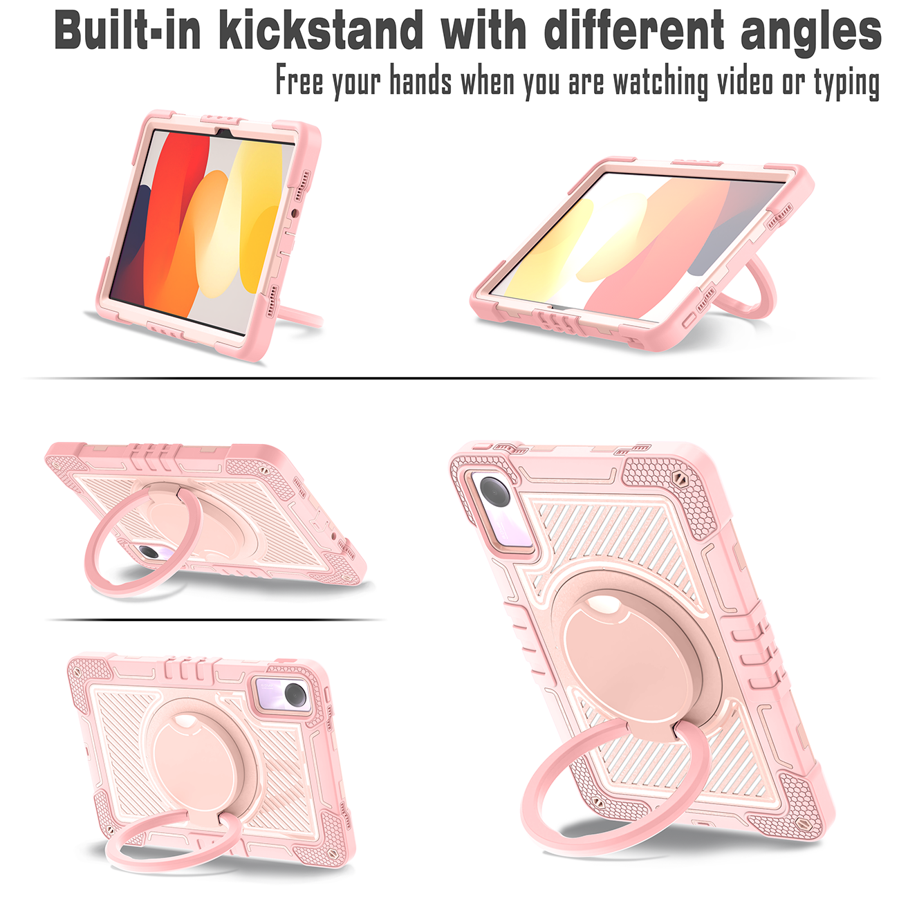 TOZIZO Full Body Pink Shockproof Case for Redmi Pad SE 8.7in – 360° Ring & Kickstand