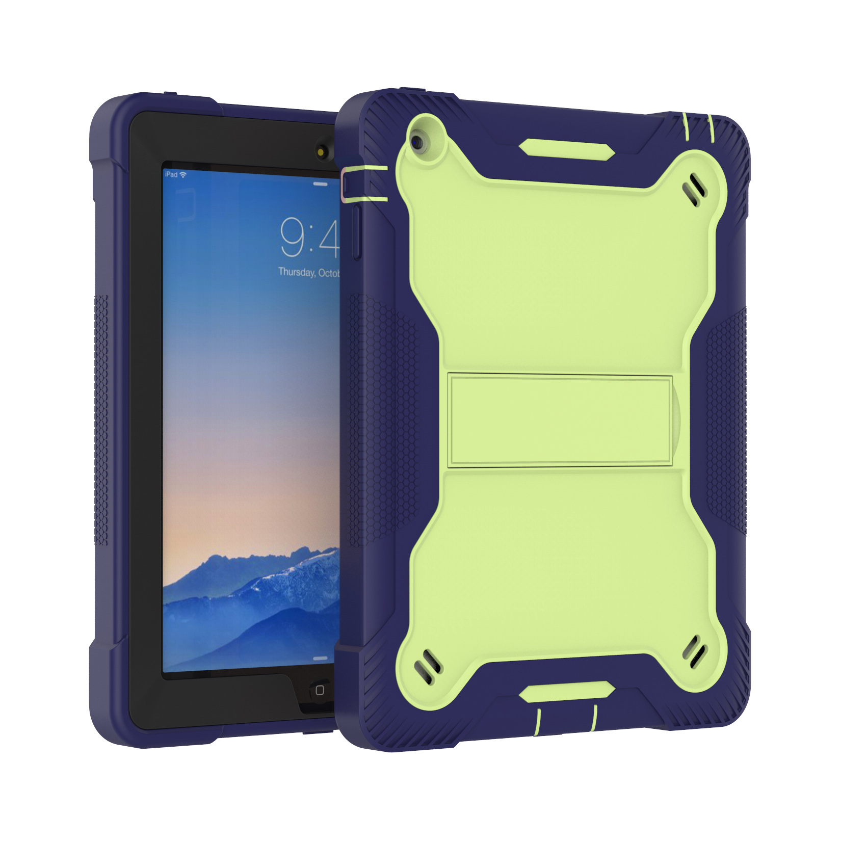 The Dual-Tone Hybrid Case combines stylish green & navy colors with rugged dual-layer protection for iPad 2, 3, and 4. Featuring reinforced bumpers, anti-slip grip, and kickstand, it is perfect for both professional and casual use.