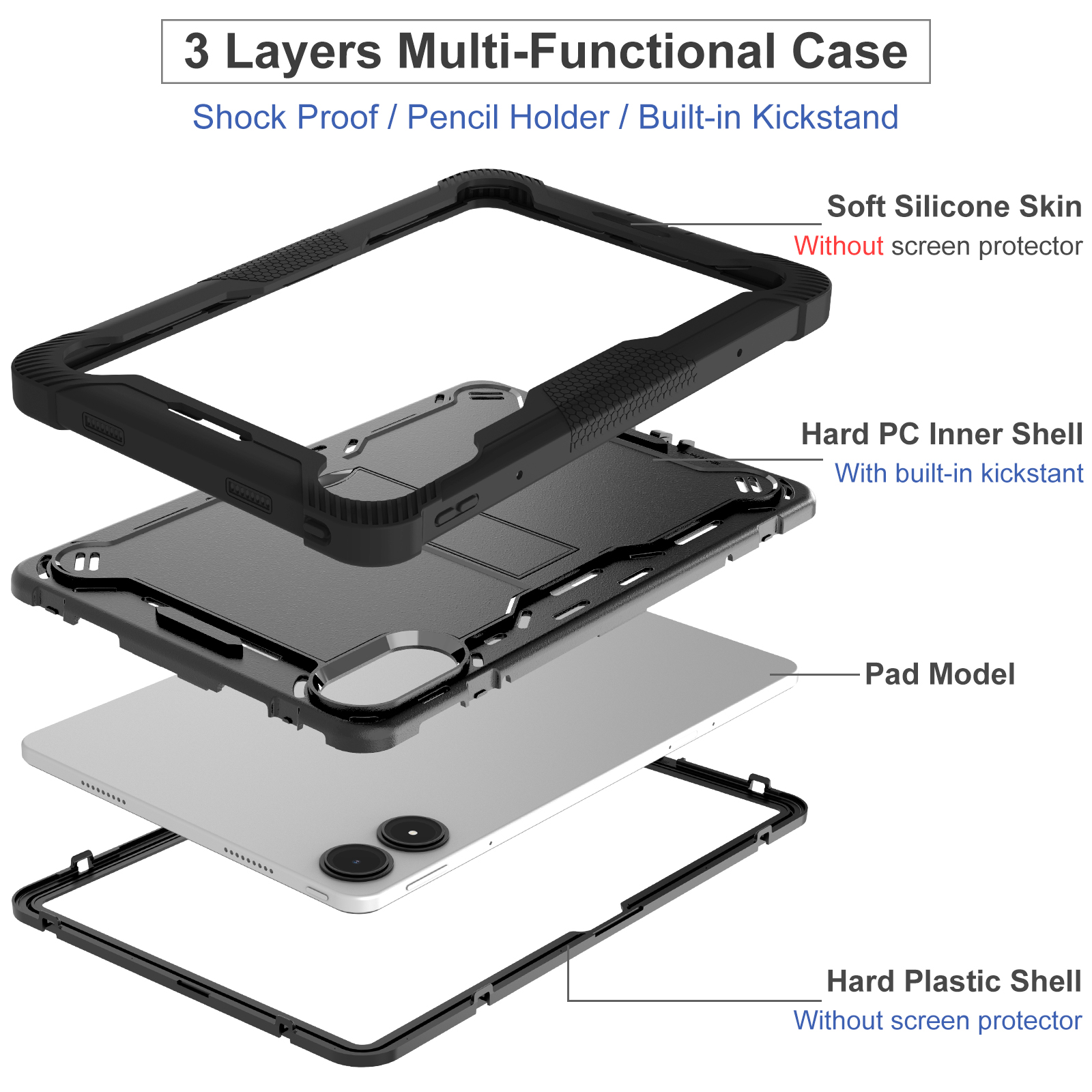 This Heavy Duty Shockproof Silicone Case for Redmi Pad Pro 12.1 / POCO Pad 12.1 is an amazing, multifunctional case that protects your brand-new Pad at all costs. The heavy-duty case even has a pencil holder and a built-in kickstand for your convenience.
