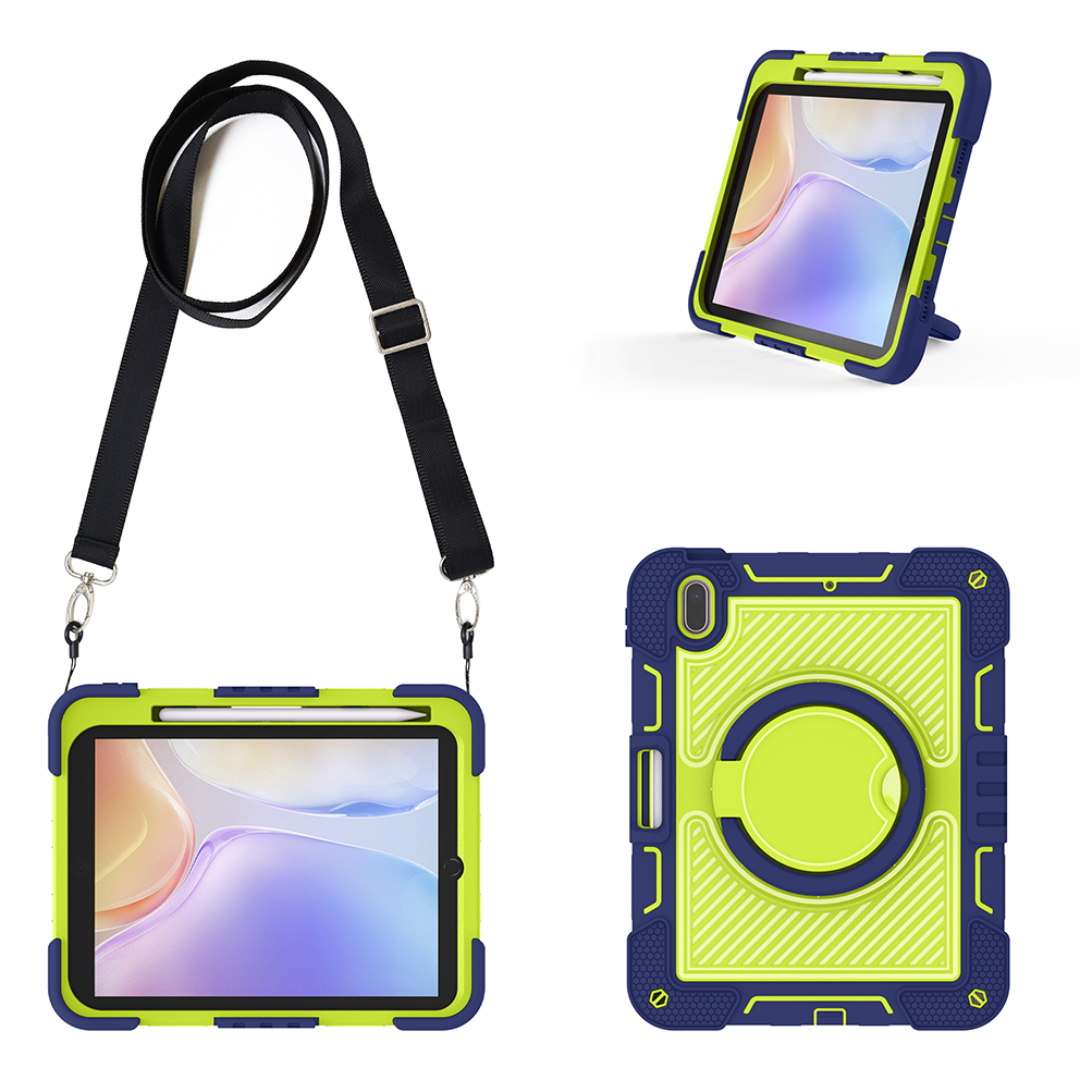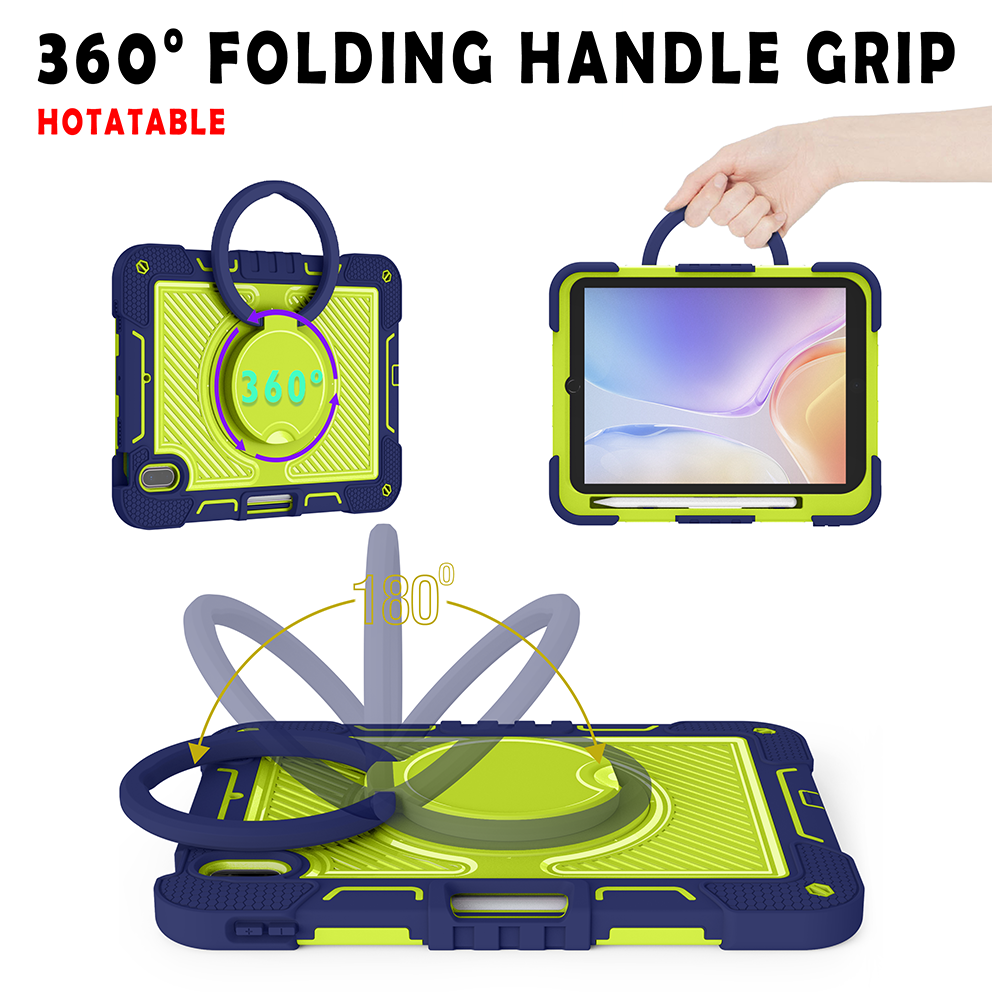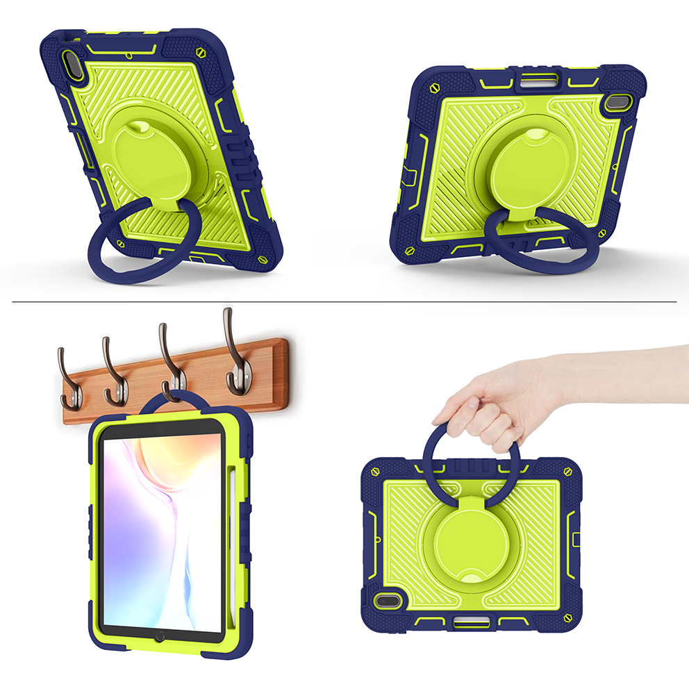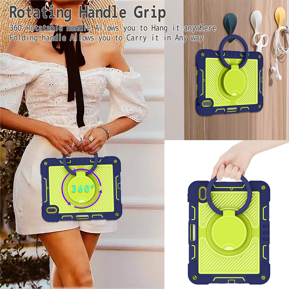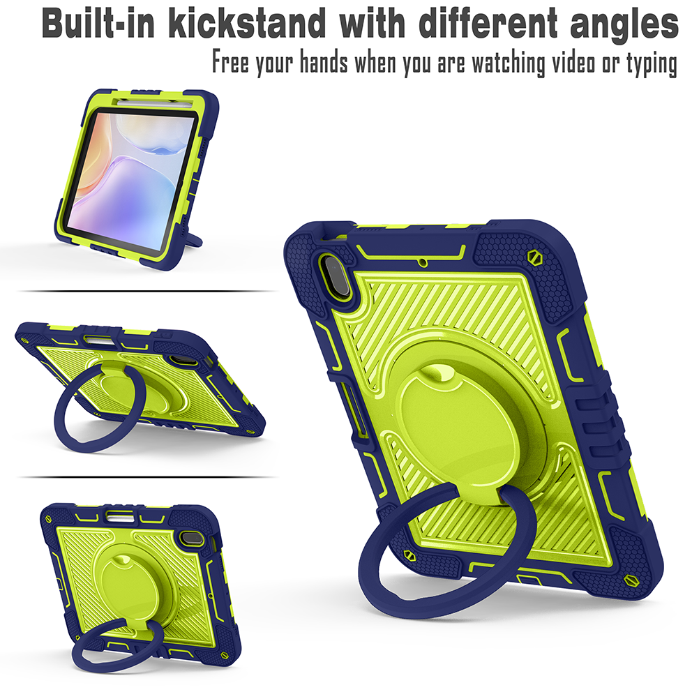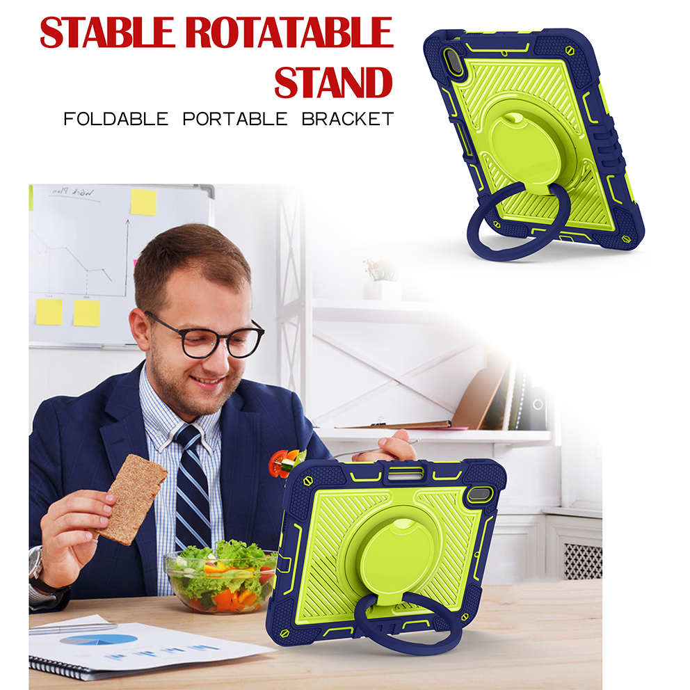 TOZIZO Heavy Duty Rugged iPad 10th Case 2022 10.9" – Navy Blue Yellow Green with 360° Rotatable Kickstand