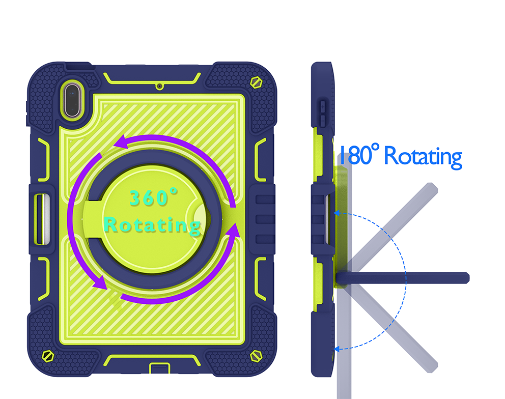 Designed for kids and professionals alike, this triple-layer rugged case for iPad 10th Gen (10.9 inch, 2022) offers full-body protection, shock resistance, and a 360° rotating kickstand grip for versatile viewing and handling.
