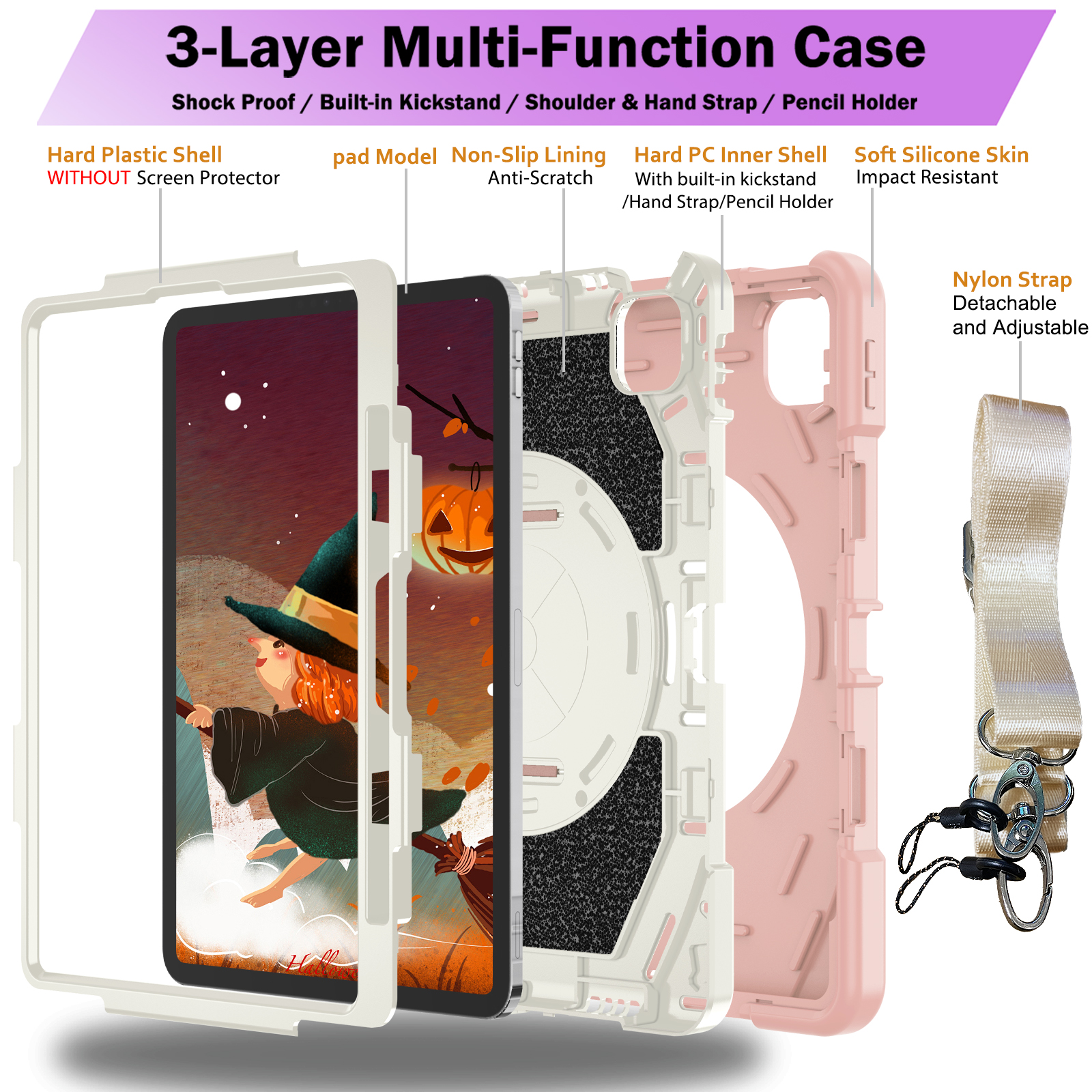 Sturdy Premium 360° Rotating iPad Case for iPad Pro 11 (2018-2022) – Multi-Function, Shockproof, Hand Strap & Kickstand – Ideal Protection for Kids and Professionals