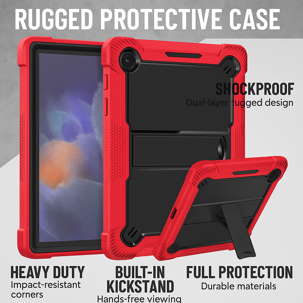 This Heavy Duty Shockproof Silicone Case for Samsung Galaxy Tab A9 Plus/Tab A11 Plus is an amazing, multifunctional case that protects your brand-new iPad at all costs. The heavy-duty case even has a built-in kickstand for your convenience.