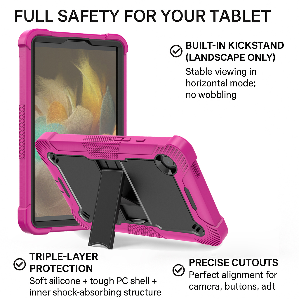 This Heavy Duty Shockproof Silicone Case for Samsung Galaxy Tab A11 is an amazing, multifunctional case that protects your brand-new Pad at all costs. The heavy-duty case even has a built-in kickstand for your convenience.