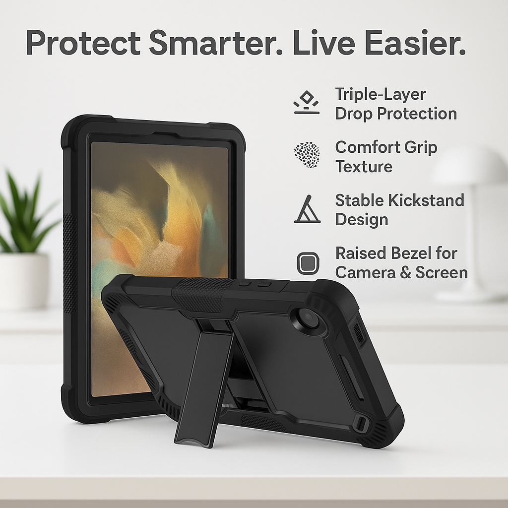 This Heavy Duty Shockproof Silicone Case for Samsung Galaxy Tab A11 2025 is an amazing, multifunctional case that protects your brand-new Pad at all costs. The heavy-duty case even has a pencil holder and a built-in kickstand for your convenience.