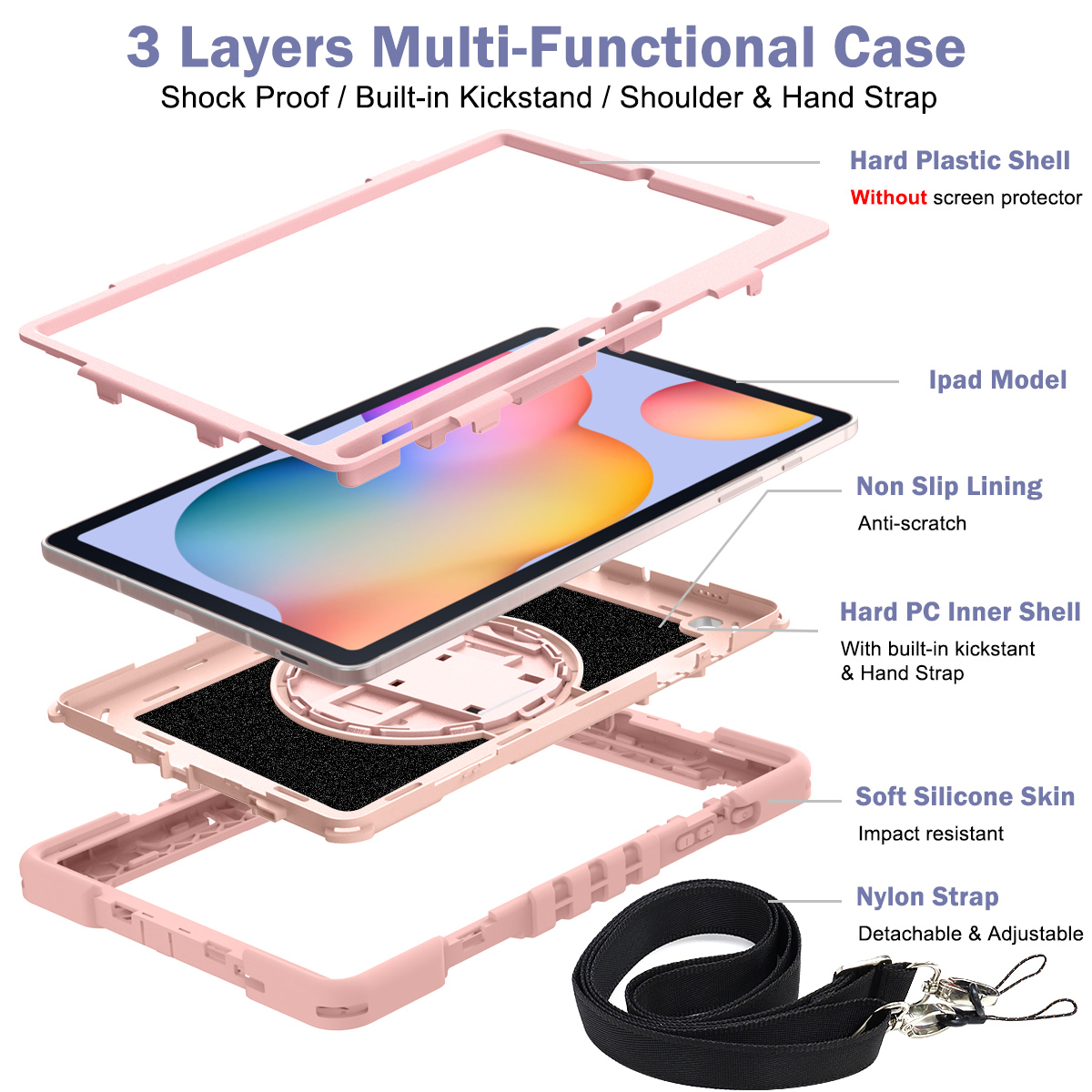 This pink rugged case for the Samsung Tab S6 Lite 10.4'' offers excellent protection with its tough triple-layer build.