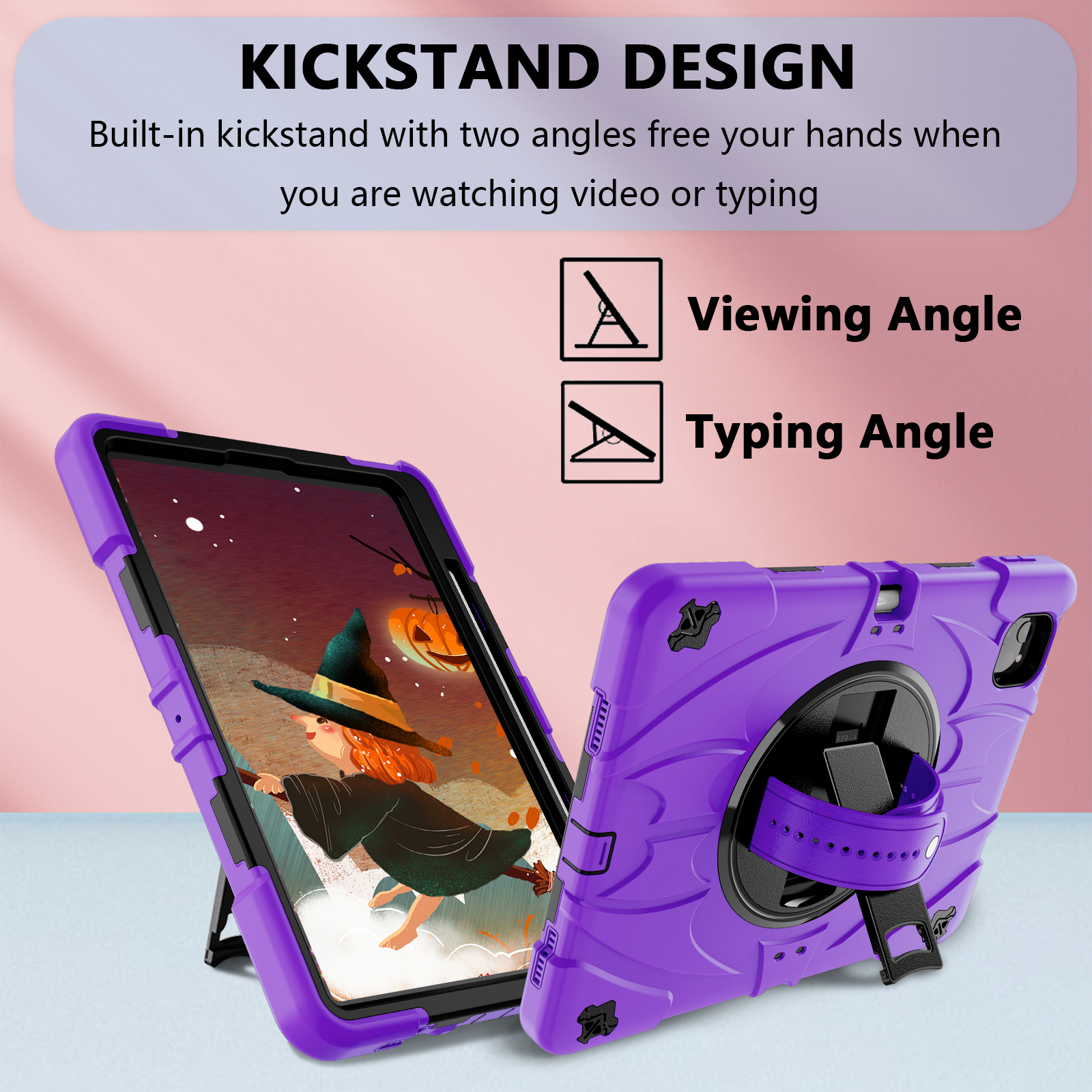 Switch effortlessly between portrait and landscape mode with the smooth 360° rotating back. The built-in hand strap ensures a secure, comfortable grip for easy carrying on the go.