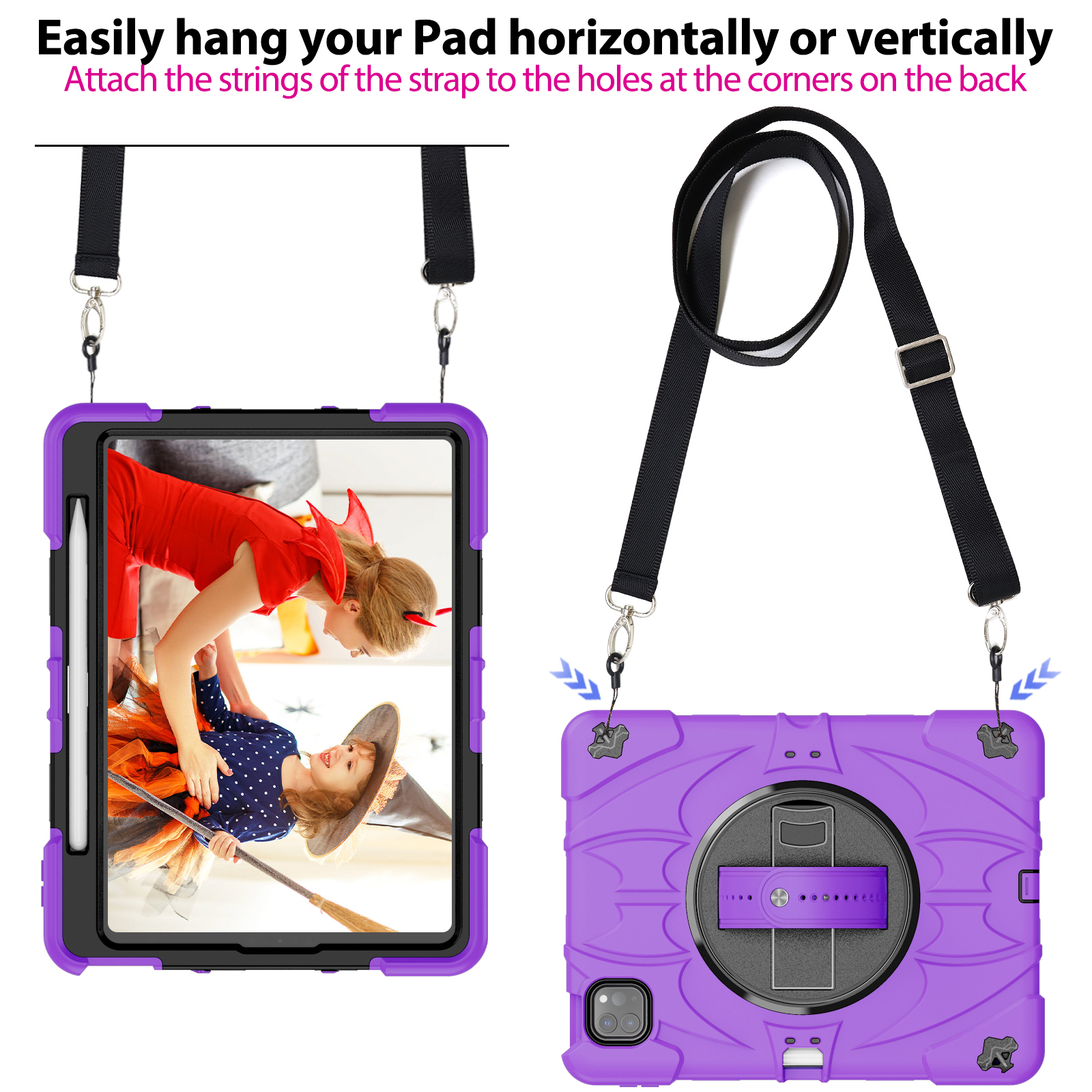 Perfect for kids and travel! The removable shoulder strap lets children carry their iPad hands-free or hang it behind a car seat for backseat entertainment.