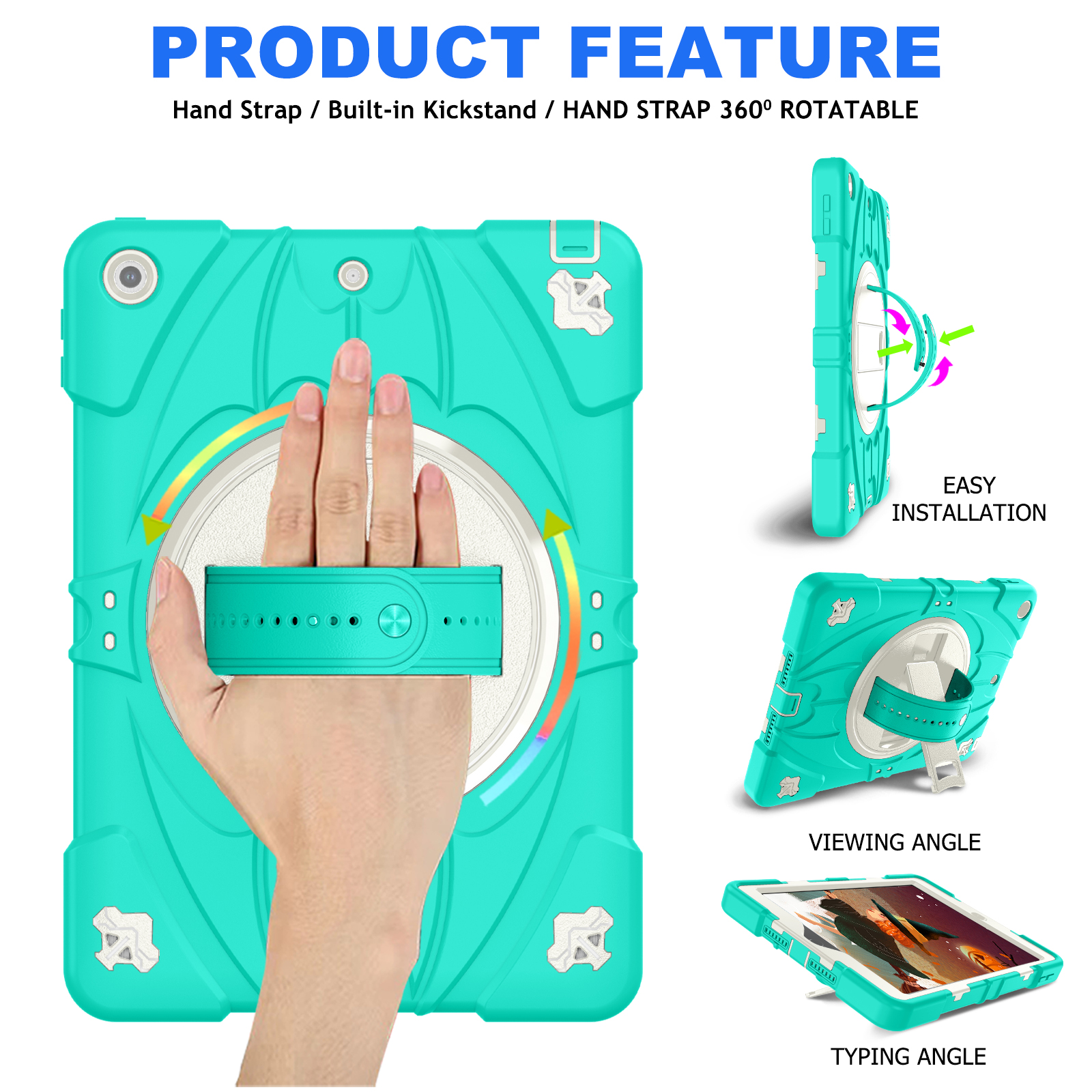 Protect your iPad 9.7 (2017, 2018) with this rugged 3-layer hybrid shockproof case. Featuring a built-in kickstand, adjustable hand strap, and a durable design, this case provides maximum protection for everyday use.