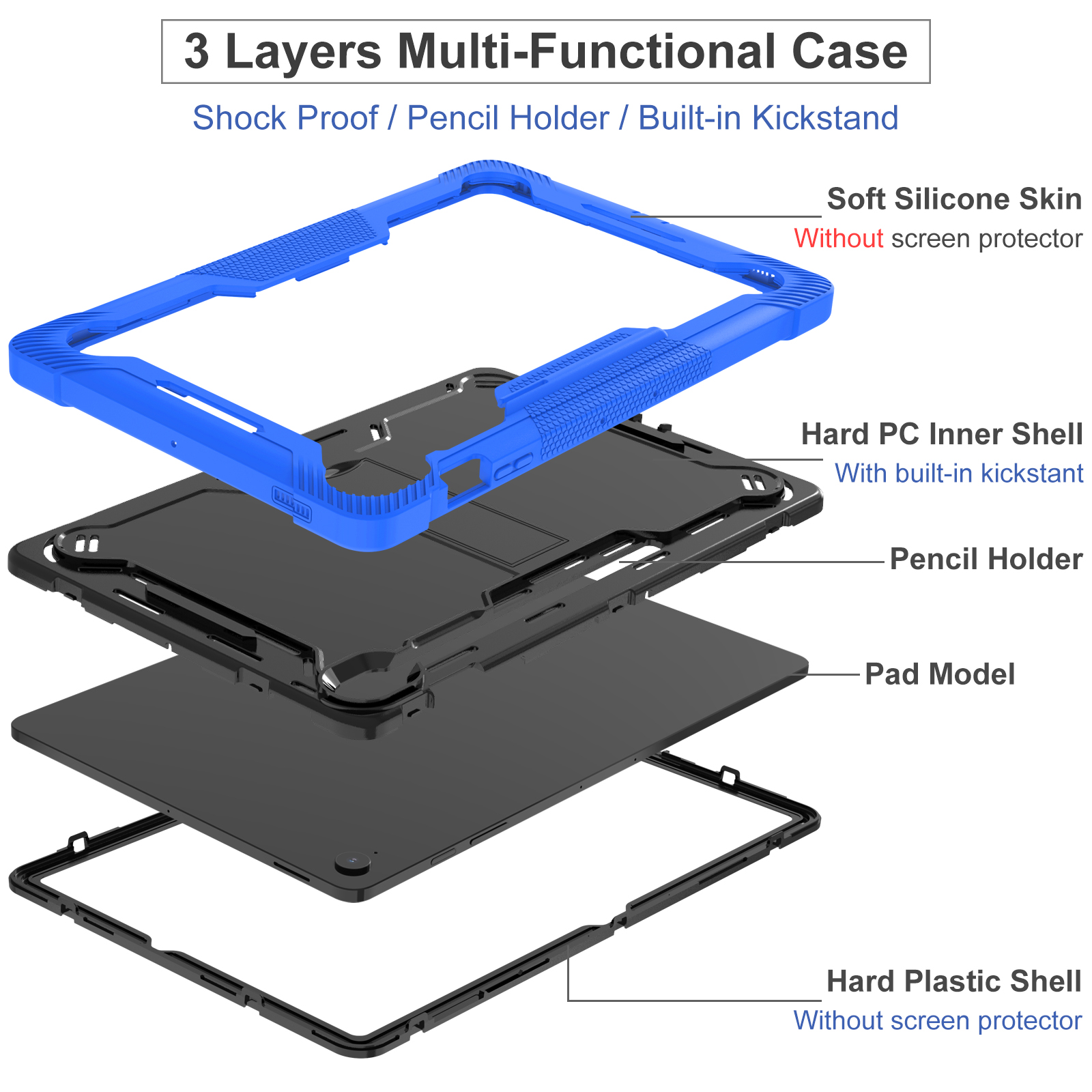 This Heavy Duty Shockproof Silicone Case for Samsung Galaxy Tab S10 FE Plus/X620/X620B 13inch is an amazing, multifunctional case that protects your brand-new Pad at all costs. The heavy-duty case even has a pencil holder and a built-in kickstand for your convenience.