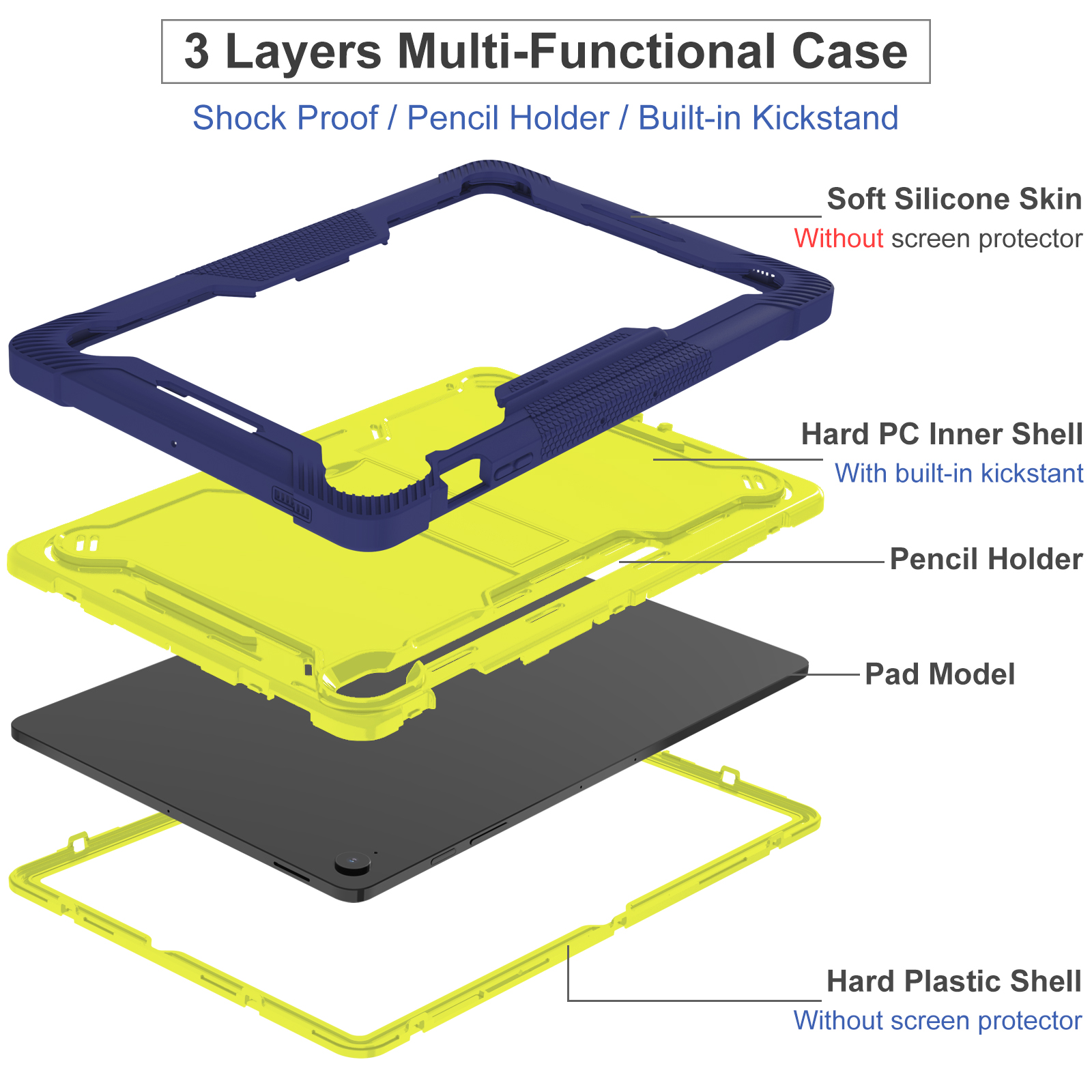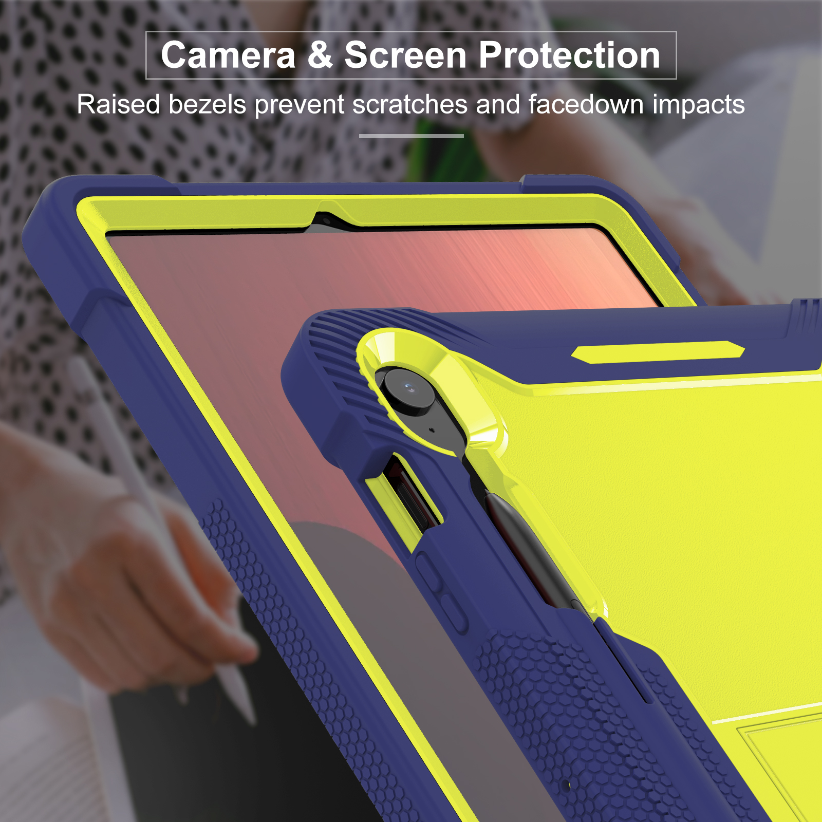This Heavy Duty Shockproof Silicone Case for Samsung Galaxy Tab S10 FE Plus/X620/X620B 13inch is an amazing, multifunctional case that protects your brand-new Pad at all costs. The heavy-duty case even has a pencil holder and a built-in kickstand for your convenience.