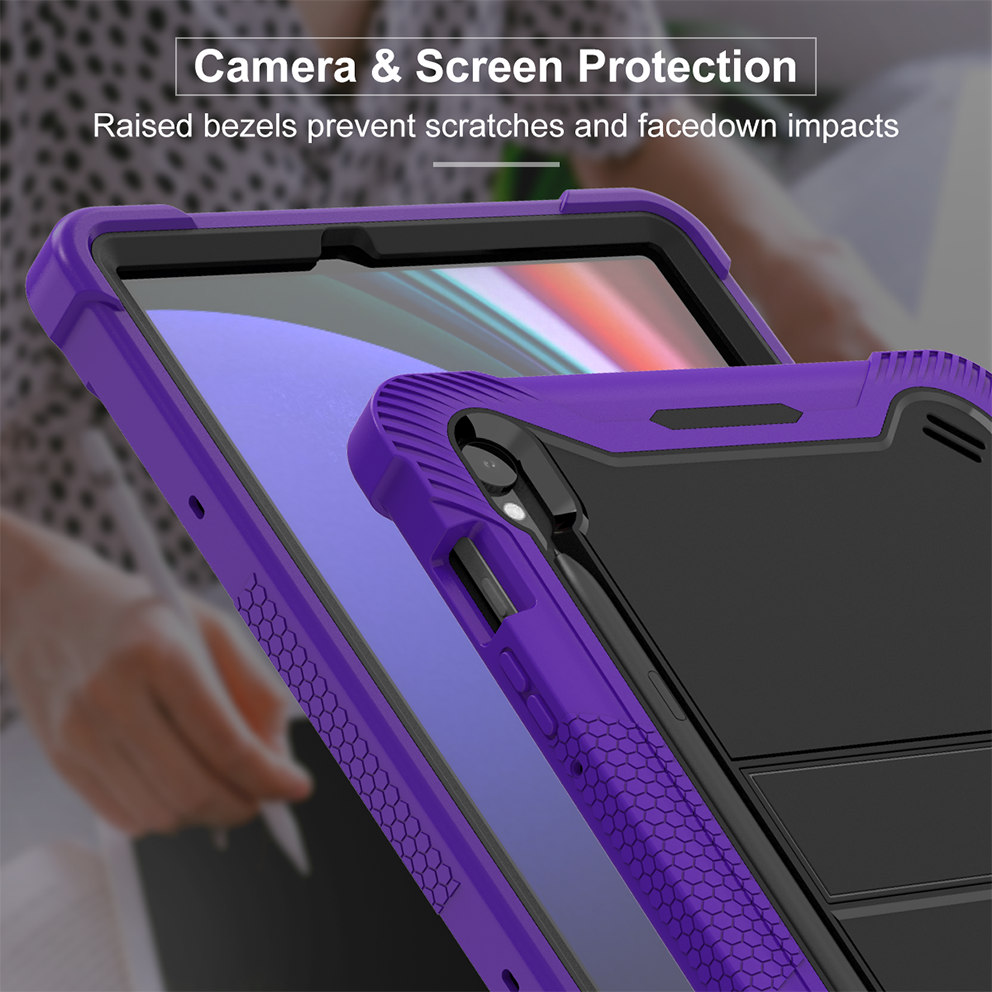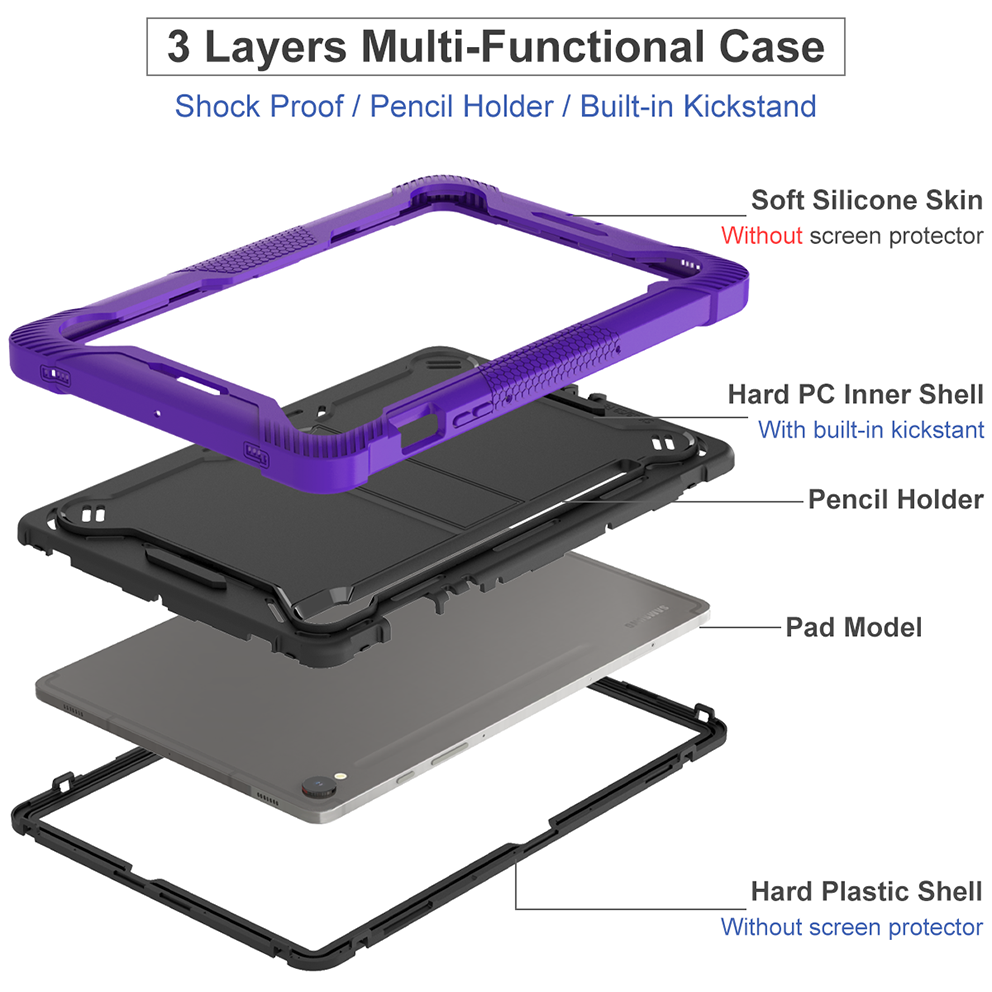 TOZIZO Triple-Layer Shockproof Survivor Case for Samsung Tab S10 Lite/S10FE/S9 FE – 11'' Rugged Purple Shell with Kickstand