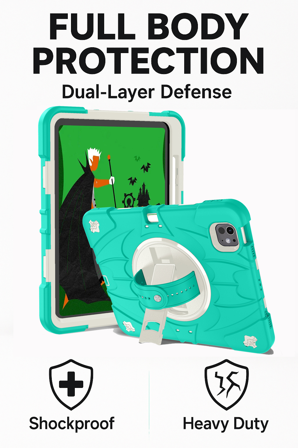 Made of 3-layer screen frame,engineered with high-grade silicone and advanced shock-absorbing technology, this case provides military-grade protection against drops, impacts, and collisions—keeping your iPad safe in any situation.