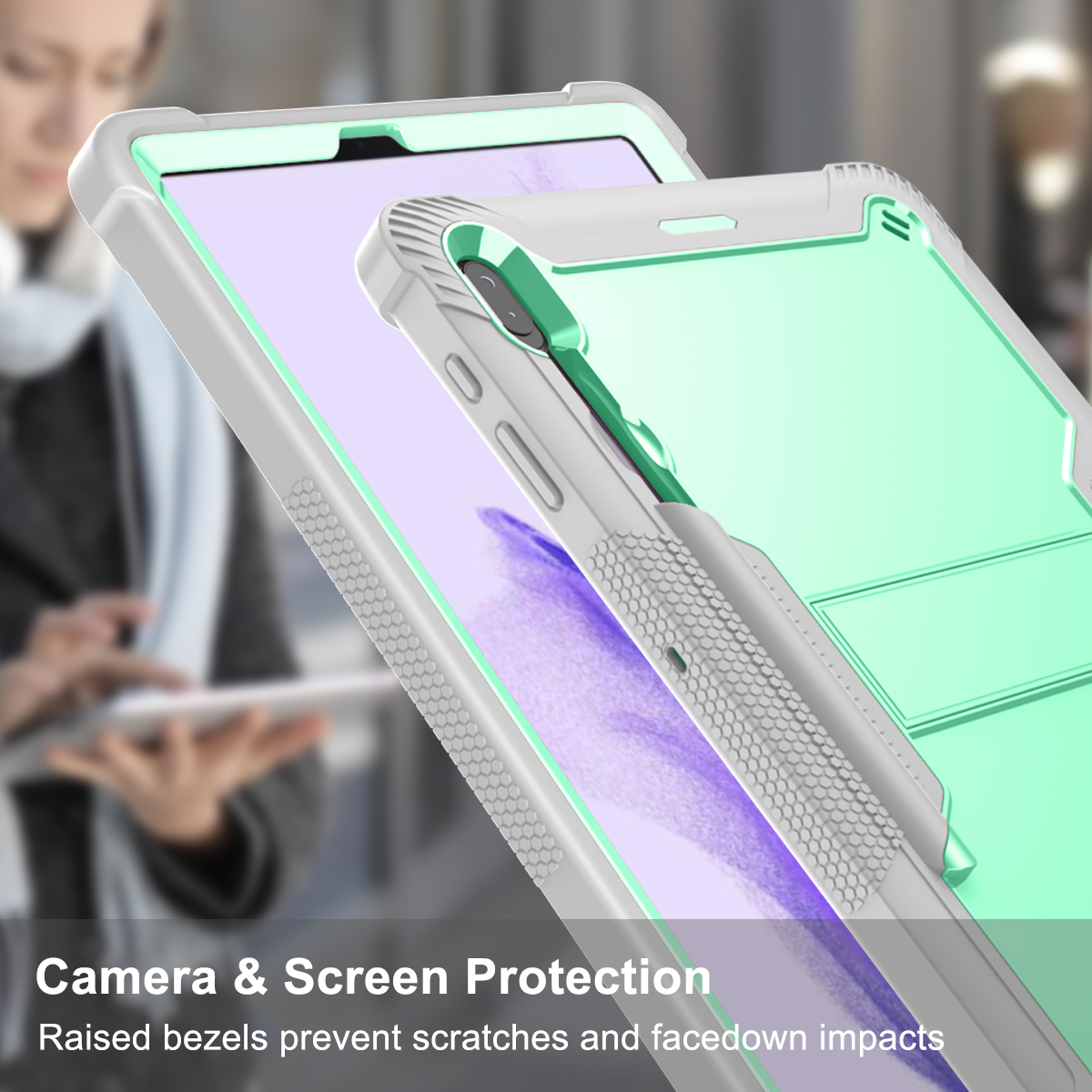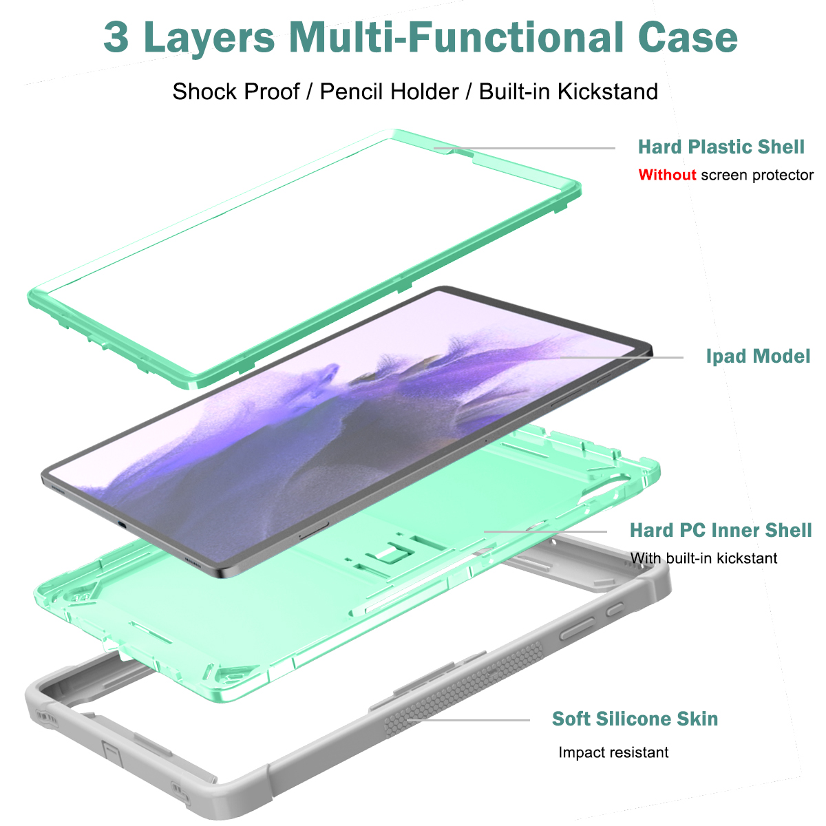 This Heavy Duty Shockproof Silicone Case for Samsung Galaxy Tab S7 Plus / S7 FE / S8 Plus 12.4 inch is an amazing, multifunctional case that protects your brand-new Pad at all costs. The heavy-duty case even has a built-in kickstand for your convenience.