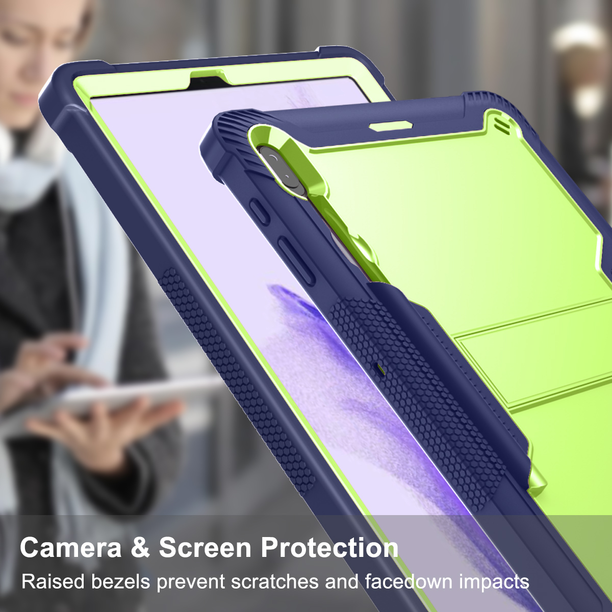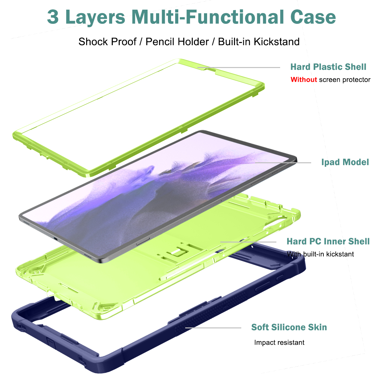 This Heavy Duty Shockproof Silicone Case for Samsung Galaxy Tab S7 Plus / S7 FE / S8 Plus 12.4 inch is an amazing, multifunctional case that protects your brand-new Pad at all costs. The heavy-duty case even has a built-in kickstand for your convenience.