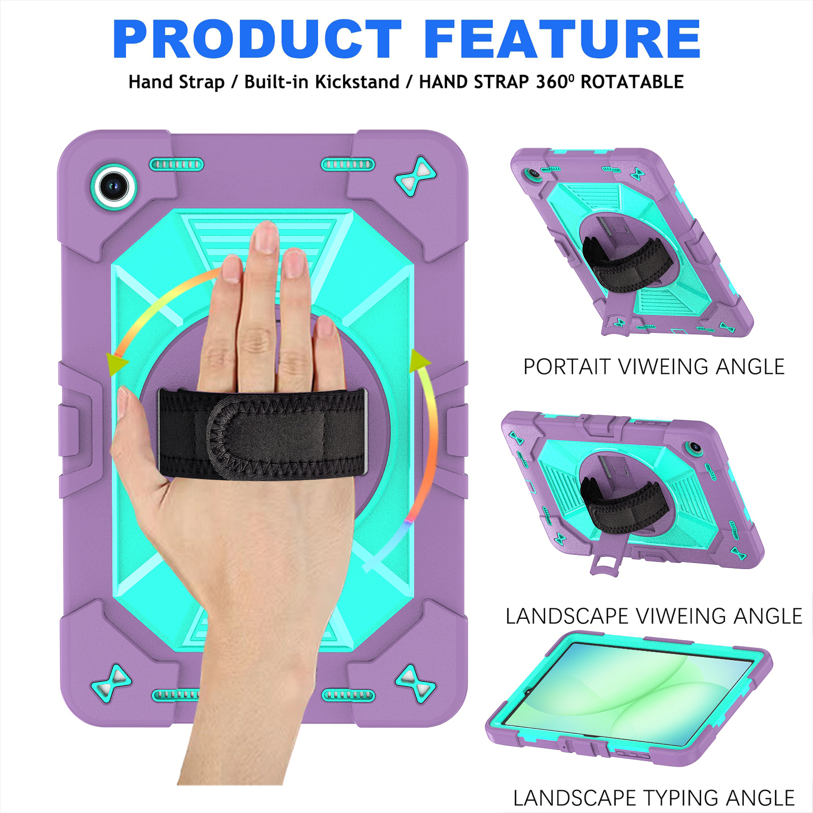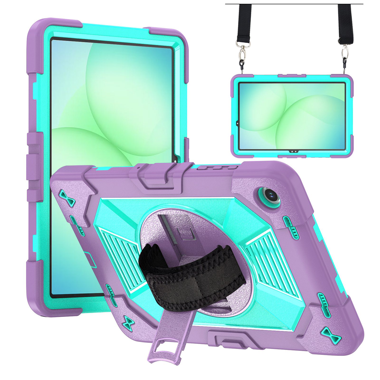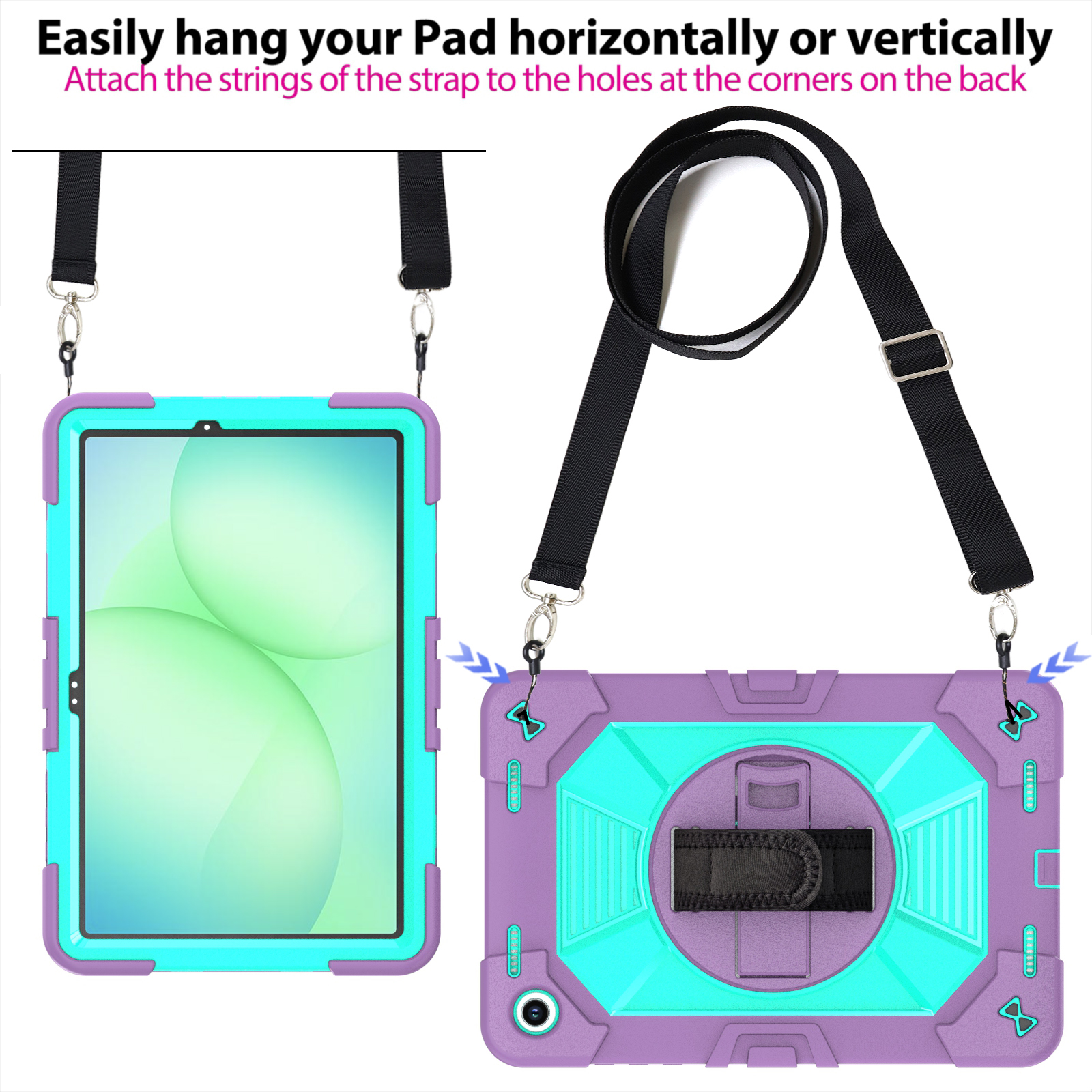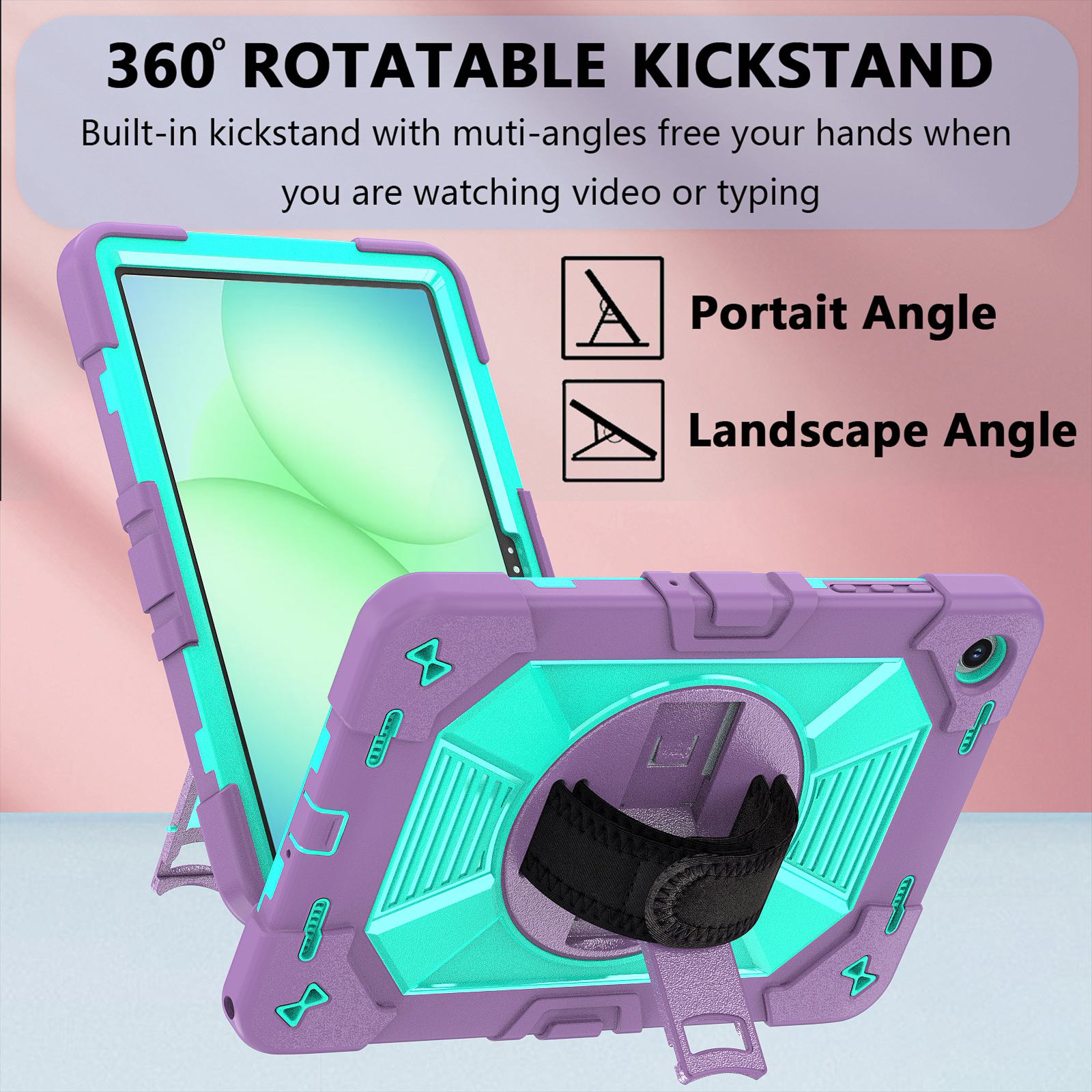 TOZIZO Teal Purple Rugged Kids Tablet Case for Samsung Tab A9+ / A11+ with Rotating Kickstand & Strap