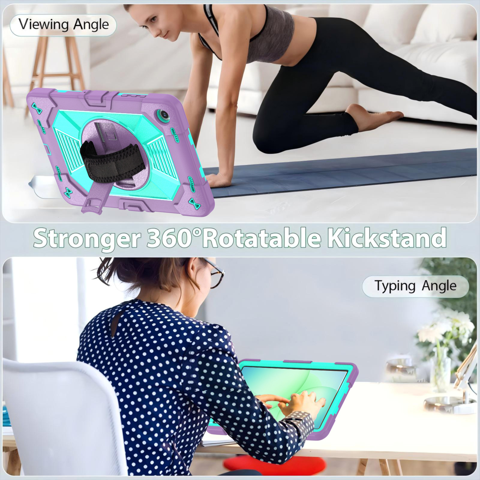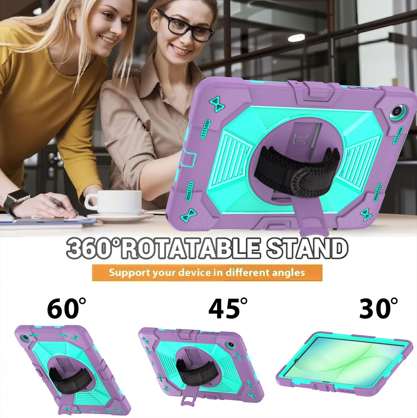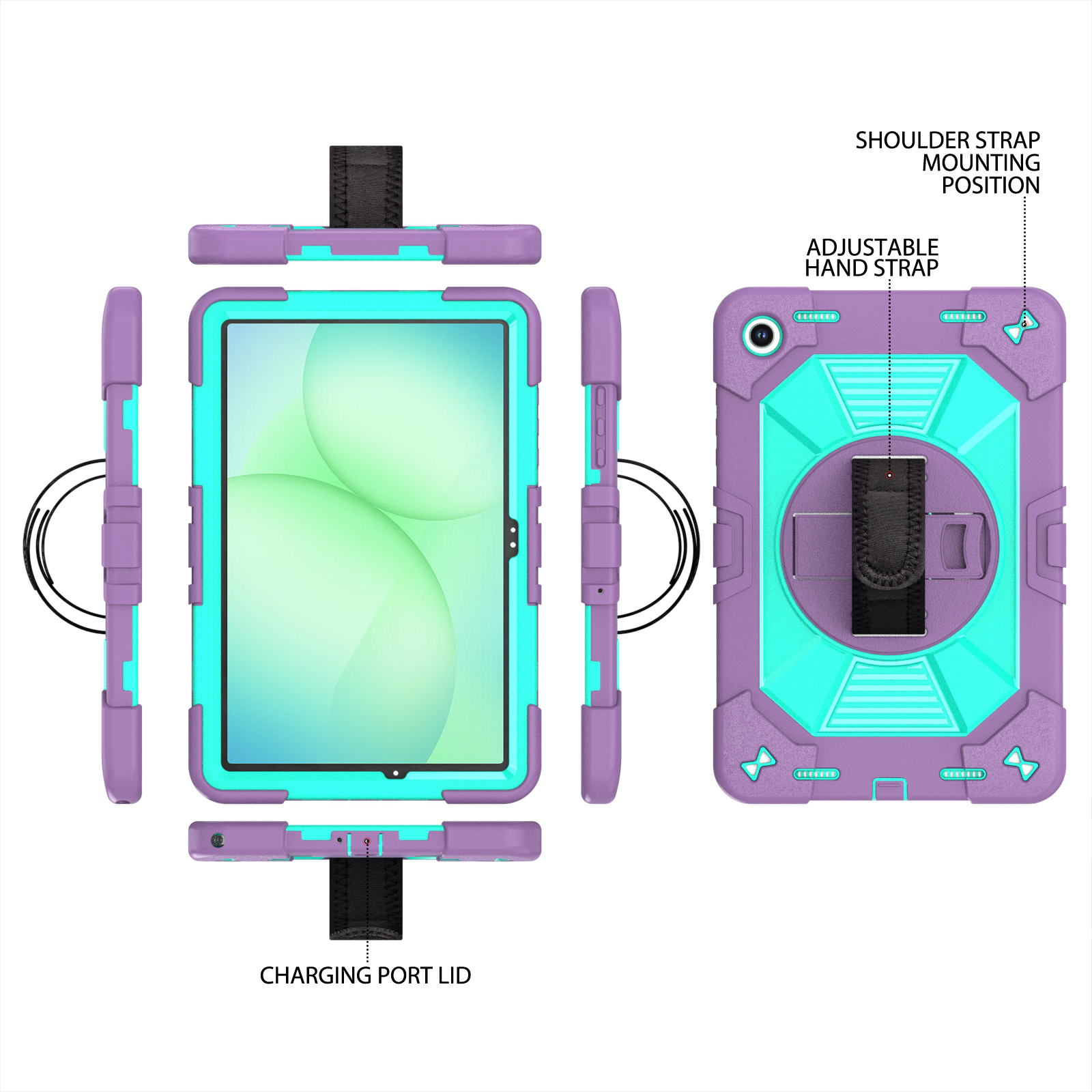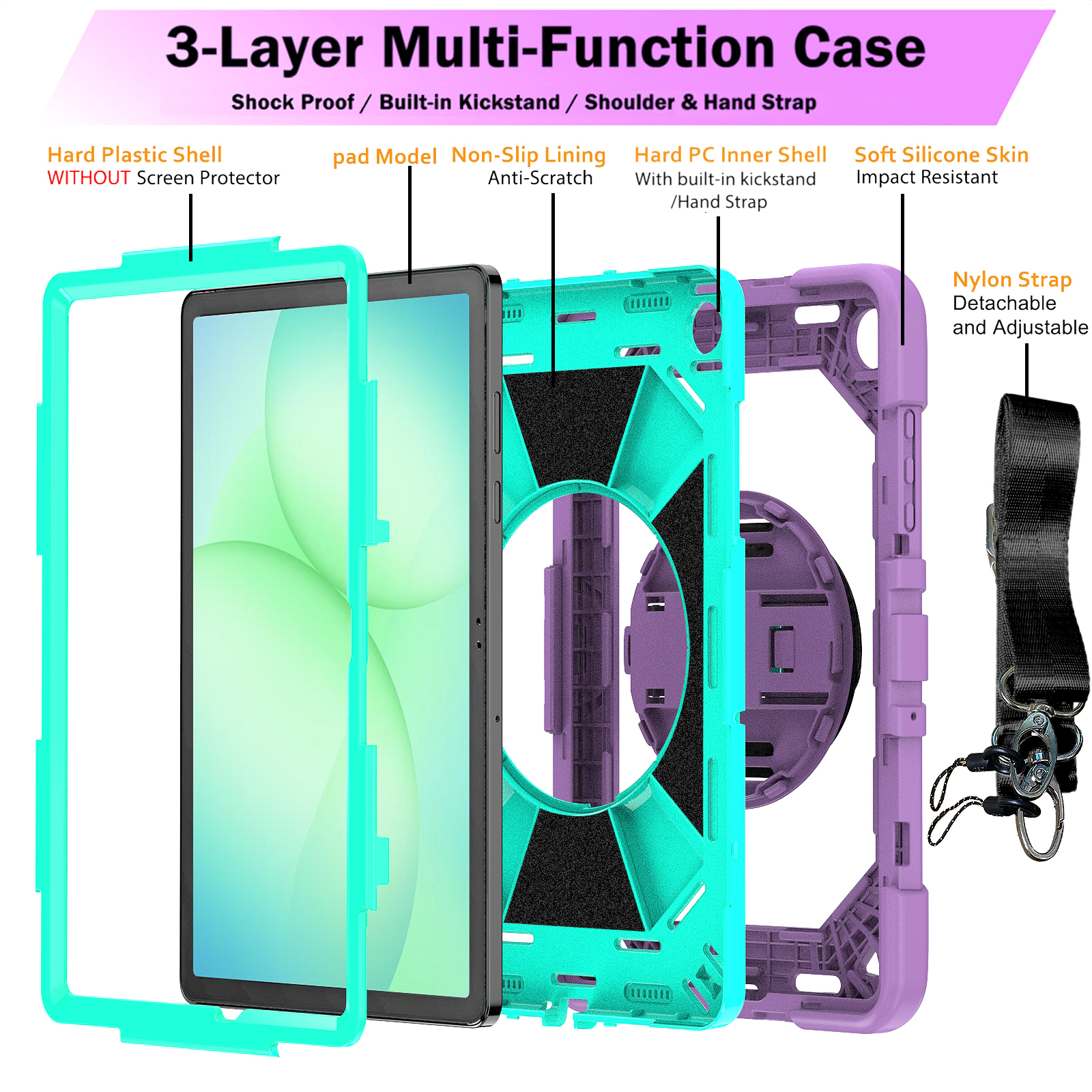 TOZIZO Teal Purple Rugged Kids Tablet Case for Samsung Tab A9+ / A11+ with Rotating Kickstand & Strap