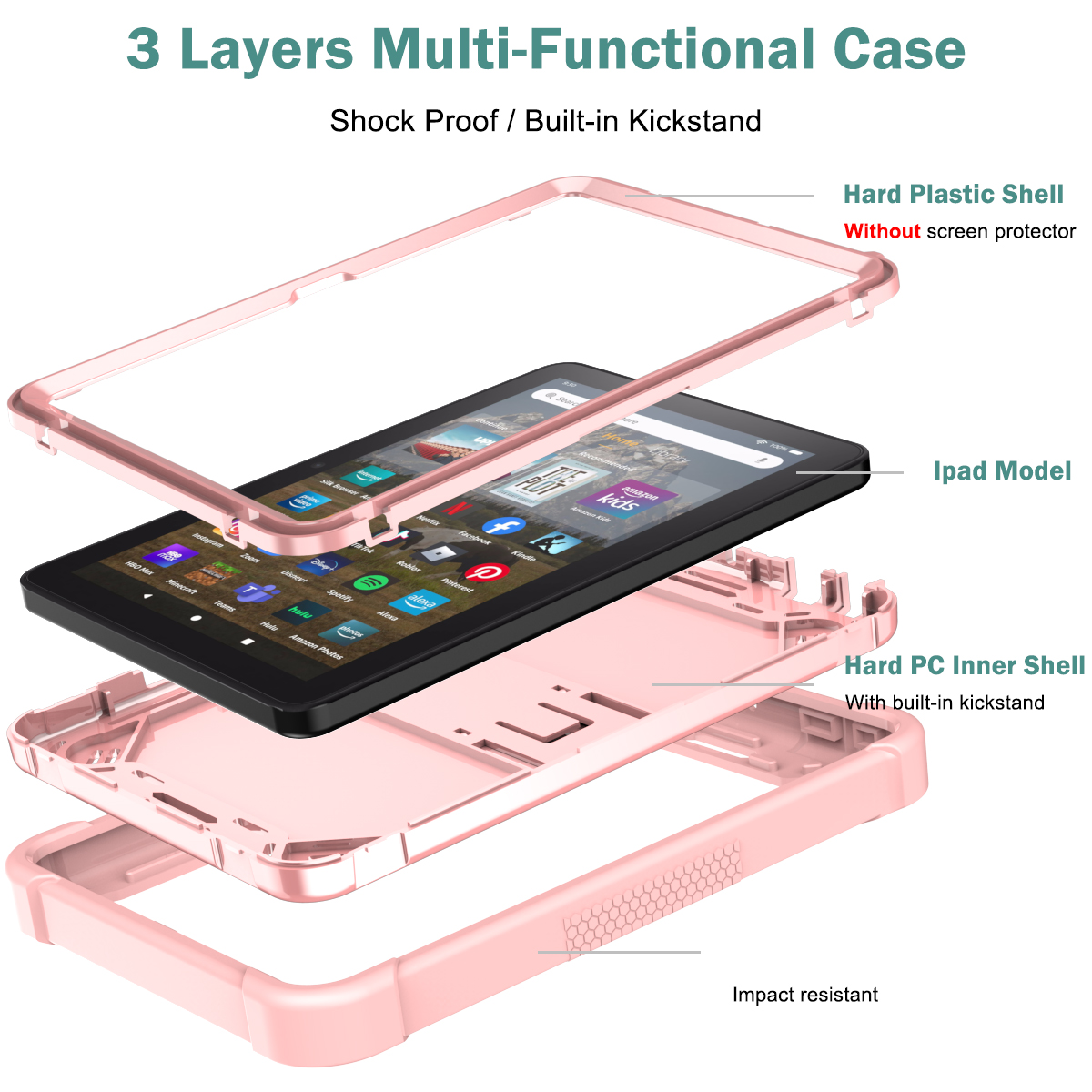 This Heavy Duty Shockproof Silicone Case for Amazon Fire HD 8 / HD 8 Plus (12th Gen, 2022) is an amazing, multifunctional case that protects your brand-new Pad at all costs. The heavy-duty case even has a built-in kickstand for your convenience.