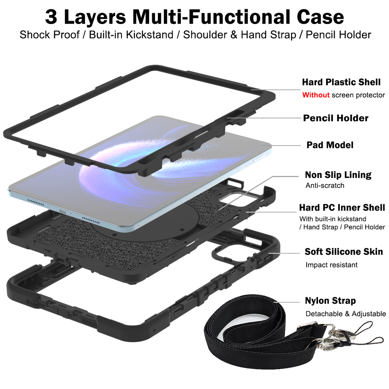 Material: Rigid PC + Soft Silicone Layers