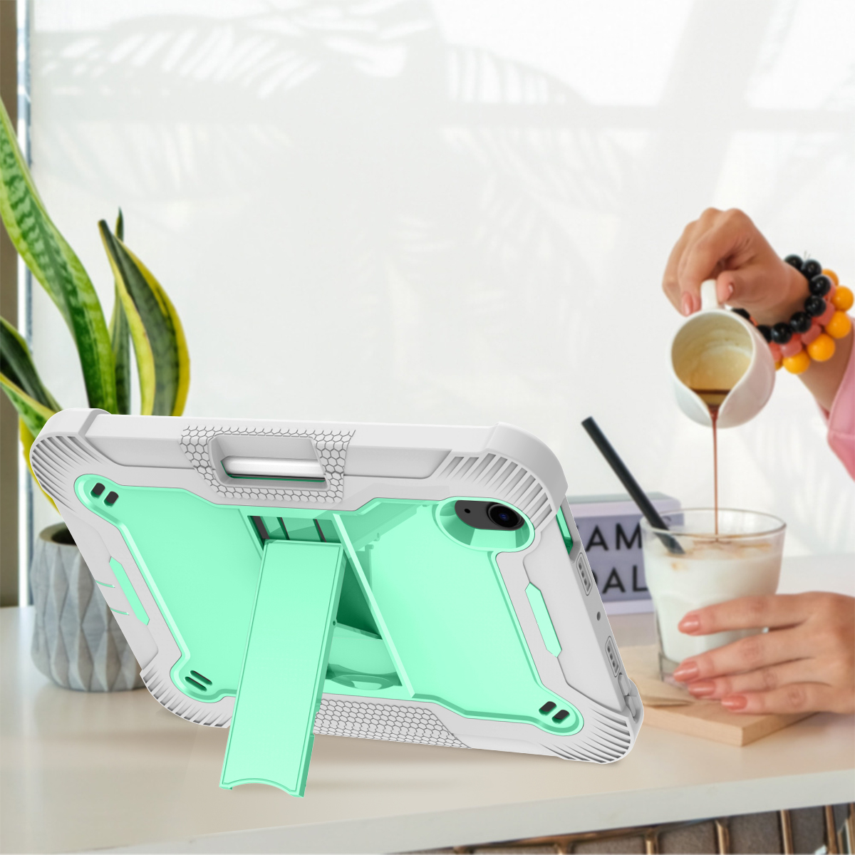 Rugged tablet case for iPad mini 6 8.3 inch. PC+Silicone triple-layer survivor protection with built-in kickstand and pen tray for study, work and kids education.