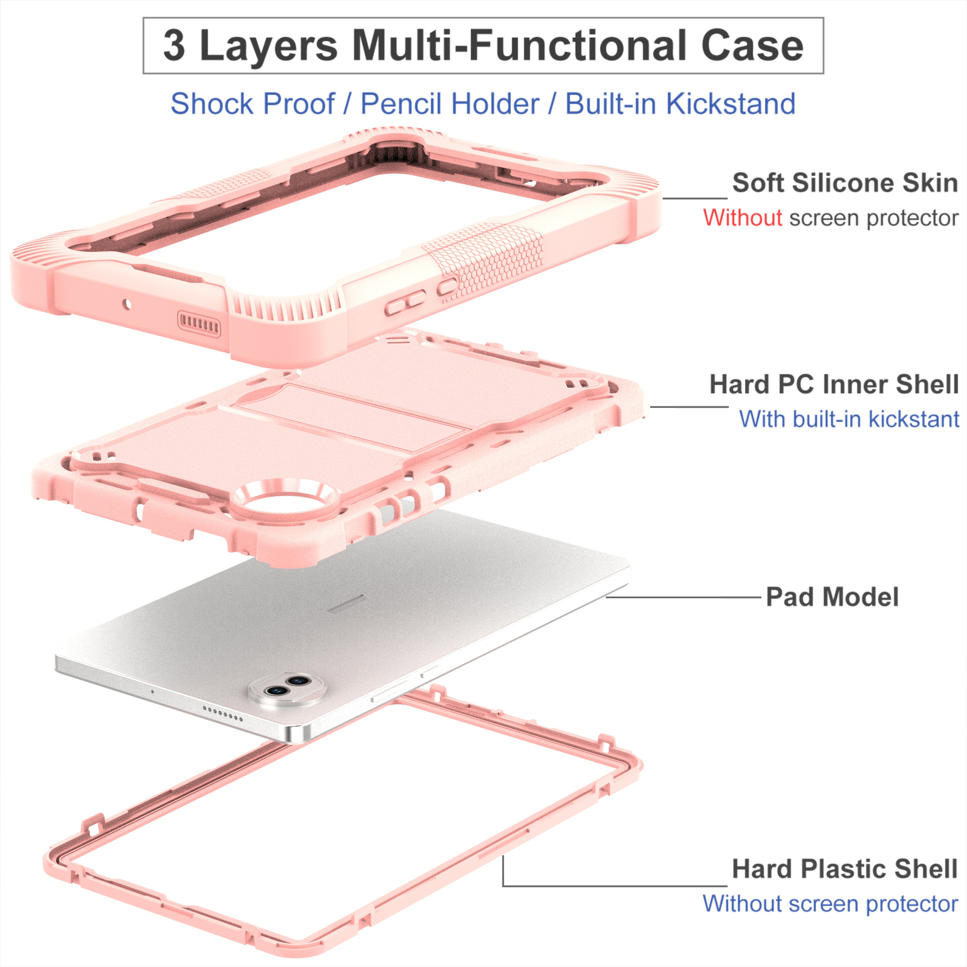 · Made of multiple layers of soft silicone, hard PC inner shell, and hard plastic outer shell