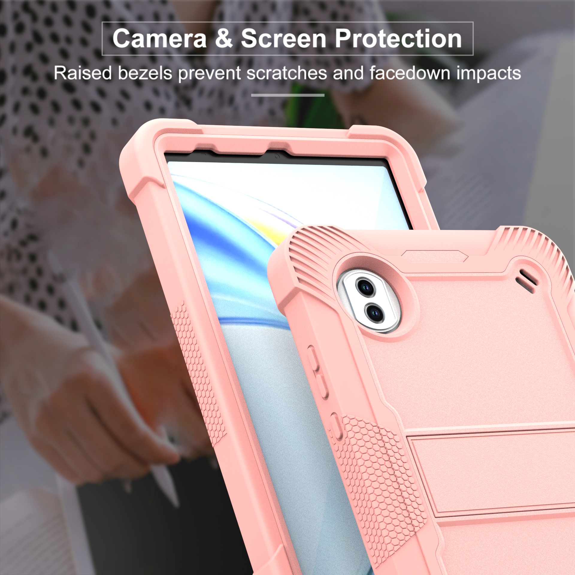 · With raised bezels to protect your screen and camera lens