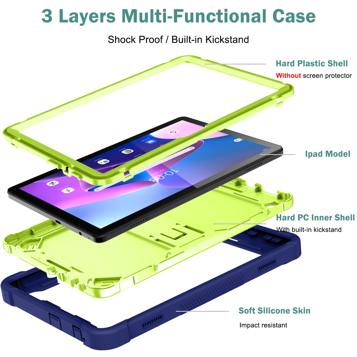 TOZIZO Rugged Shockproof Tablet Case for Lenovo Tab M10 HD Gen 3 10.1 inch with Kickstand - Hybrid PC+Silicone