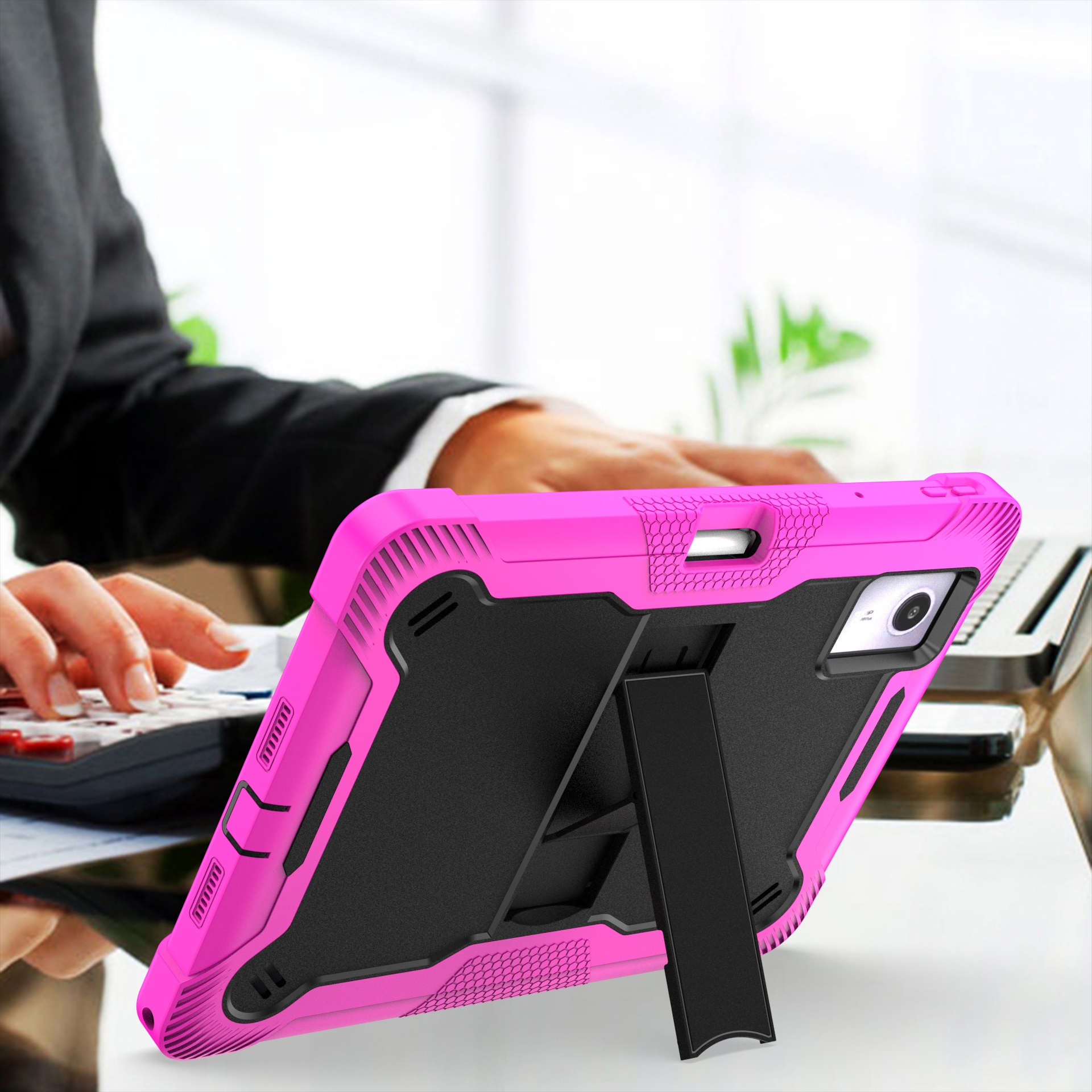 · With built-in kickstand for comfortable viewing and usage