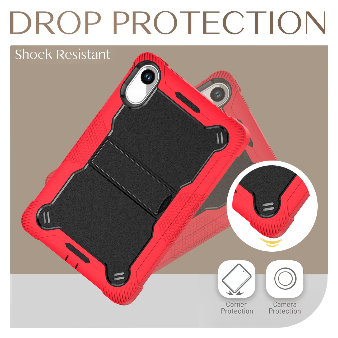 TOZIZO Red Black Shockproof Heavy Duty Tablet Case for Redmi SE11 with Kickstand
