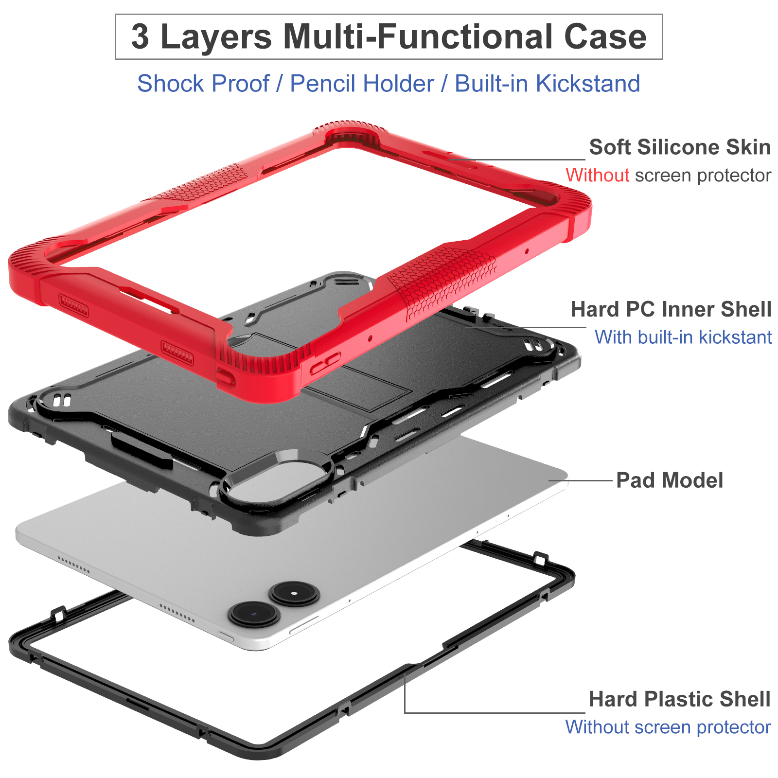 This Heavy Duty Shockproof Silicone Case for Redmi Pad Pro 12.1 / POCO PAD 12.1 / Redmi Pad 2 Pro 12.1 is an amazing, multifunctional case that protects your brand-new Pad at all costs. The heavy-duty case even has a pencil holder and a built-in kickstand for your convenience.