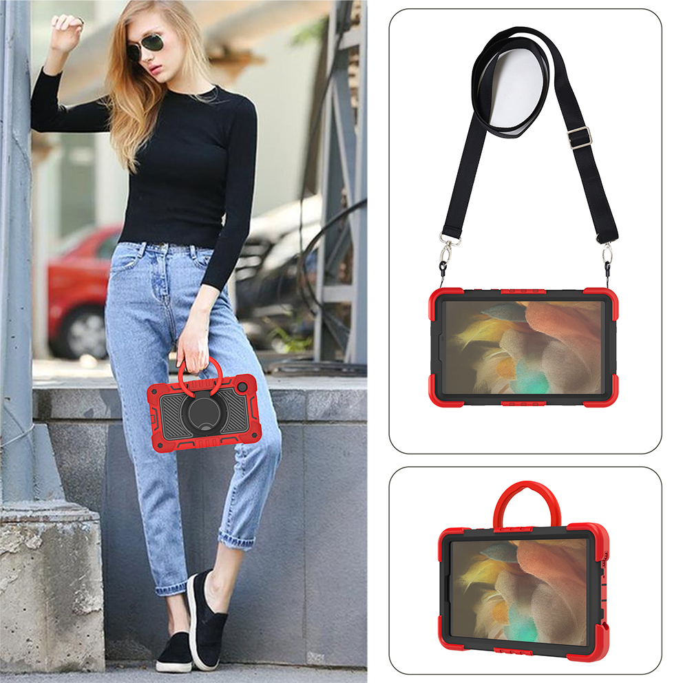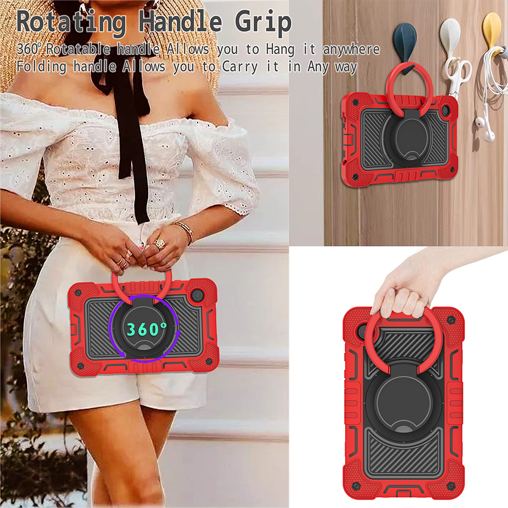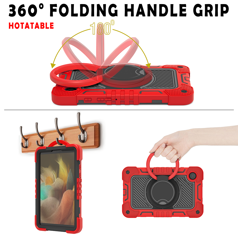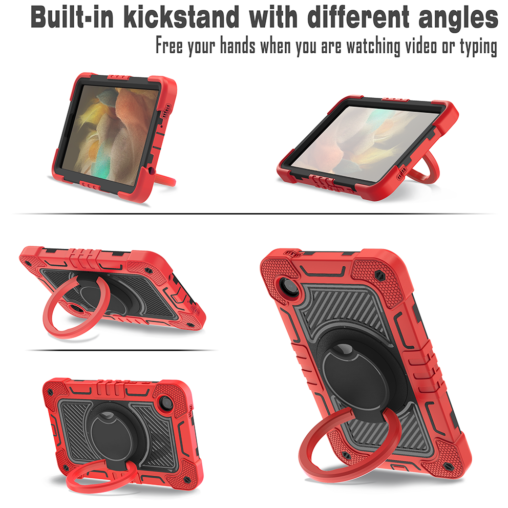 Triple layer heavy duty rugged case with 360° rotatable grip ring stand for Samsung Tab A11 (8.7'') 2025 model - Red+Black.