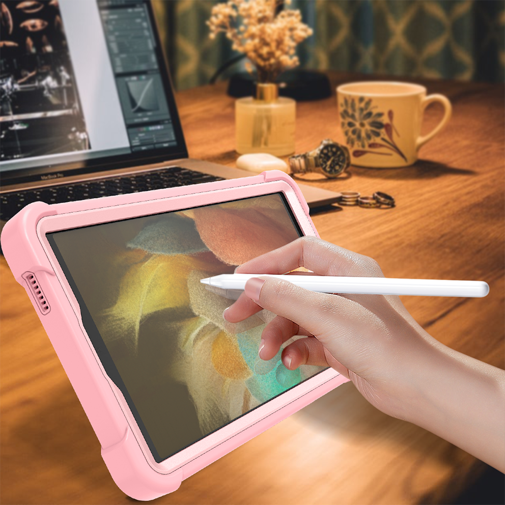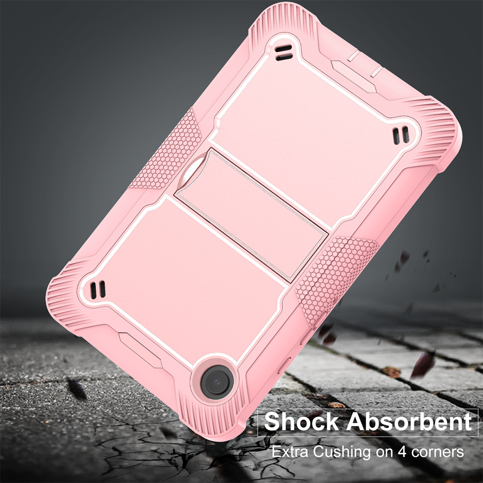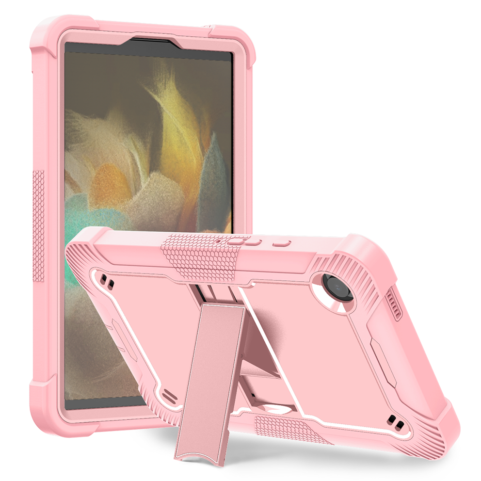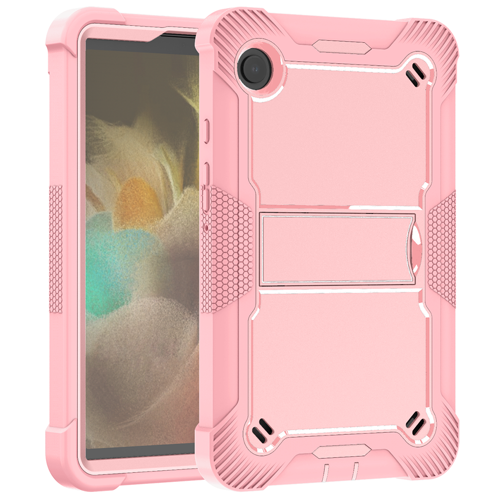 Stylish and protective pink rugged case for Samsung Galaxy Tab A9 8.7" (X110/X115/X117). Triple-layer silicone protection with a built-in kickstand.