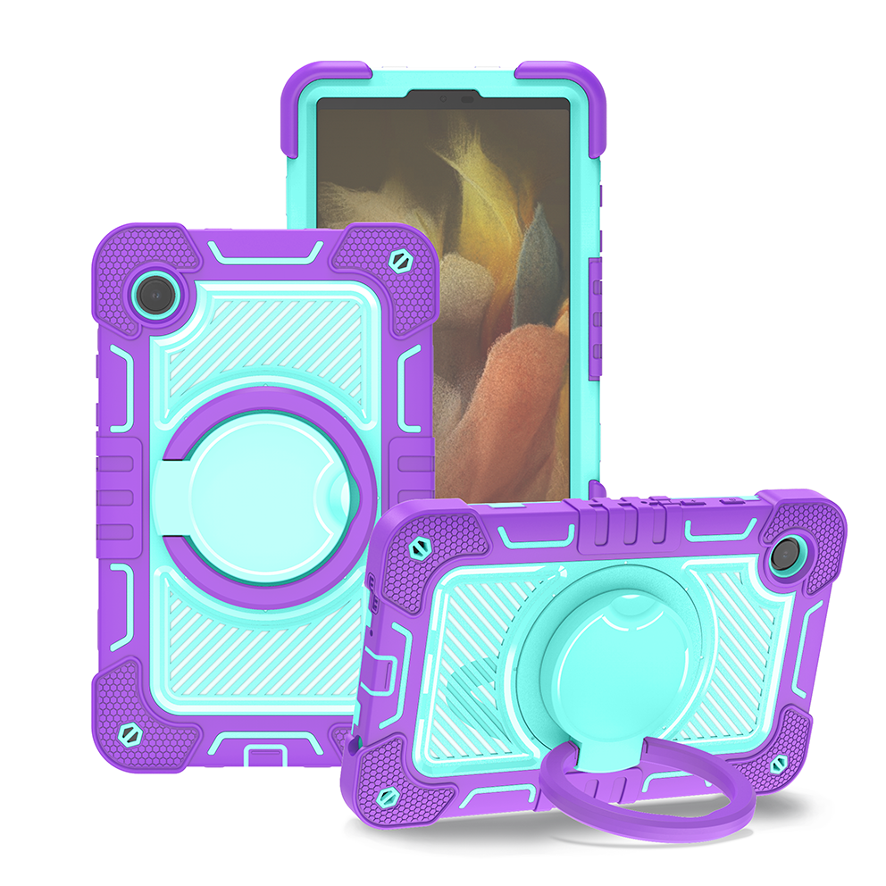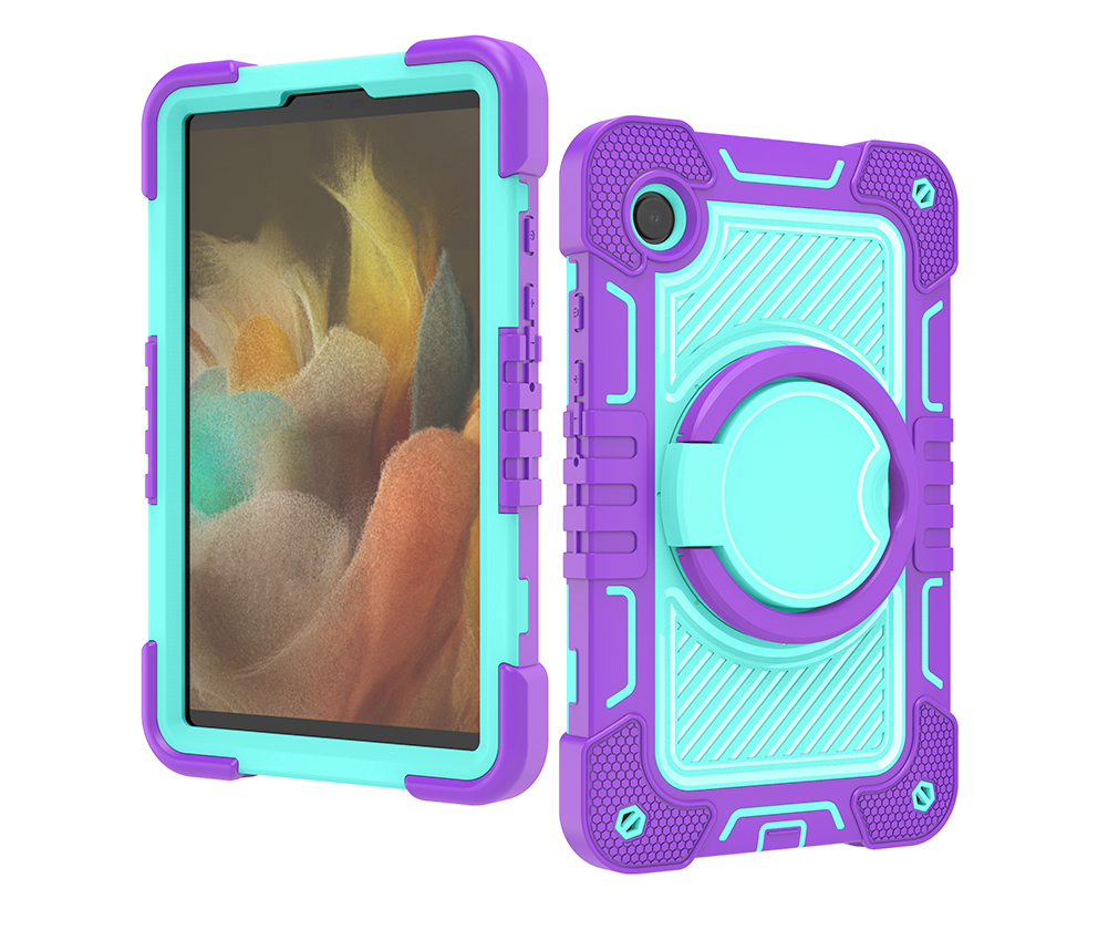 Protect your Samsung Tab A11 Plus (11 inch SM‑X310 / SM‑X315) with this stylish dual-tone purple and mint green rugged case. Built with a triple-layer PC + silicone design, it features a 360° rotating ring stand and reinforced corners, ideal for kids and learning environments.