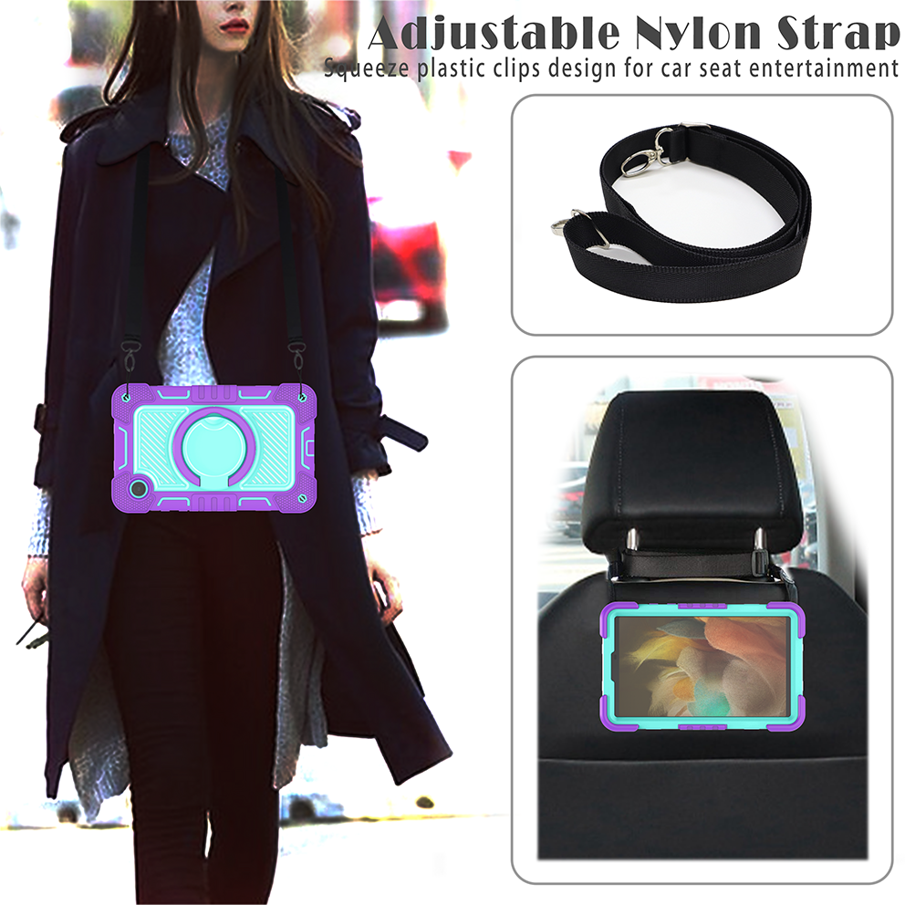 TOZIZO Samsung Tab A11 Plus Heavy Duty Case – Purple & Mint Green with Kickstand Ring