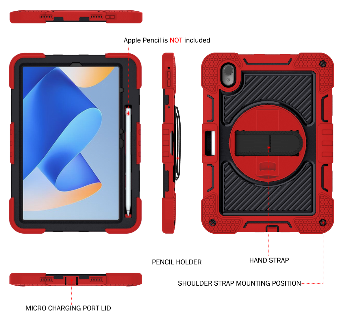TOZIZO Heavy Duty Shockproof Tablet Case for Huawei Matepad 11 (2023) with 360° Kickstand – Red & Black