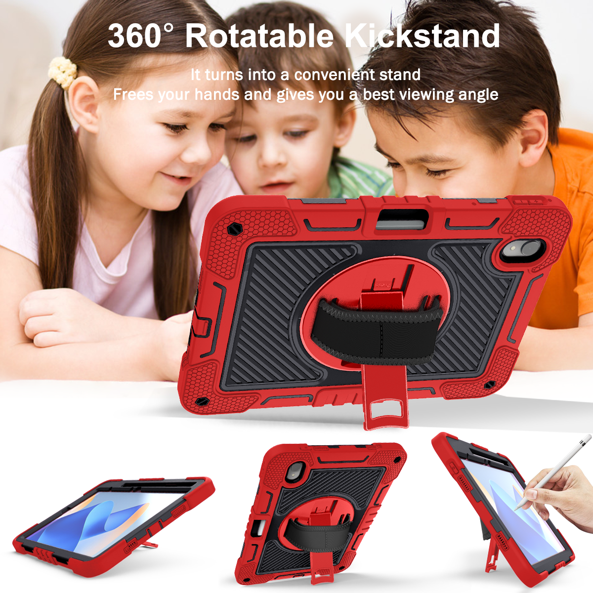 Durable and rugged case for Huawei Matepad 11 (2023), designed with 3-layer protection, 360° rotation kickstand, hand strap, and detachable shoulder strap. A perfect shockproof case for kids and active users.