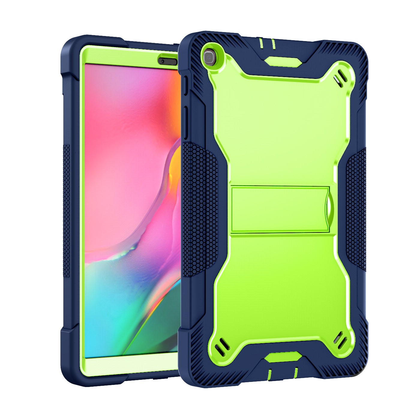 This Heavy Duty Shockproof Silicone Case for Samsung Galaxy Tab A 10.1(2019/2021)T510/T515 is an amazing, multifunctional case that protects your brand-new Pad at all costs. The heavy-duty case even has a built-in kickstand for your convenience.