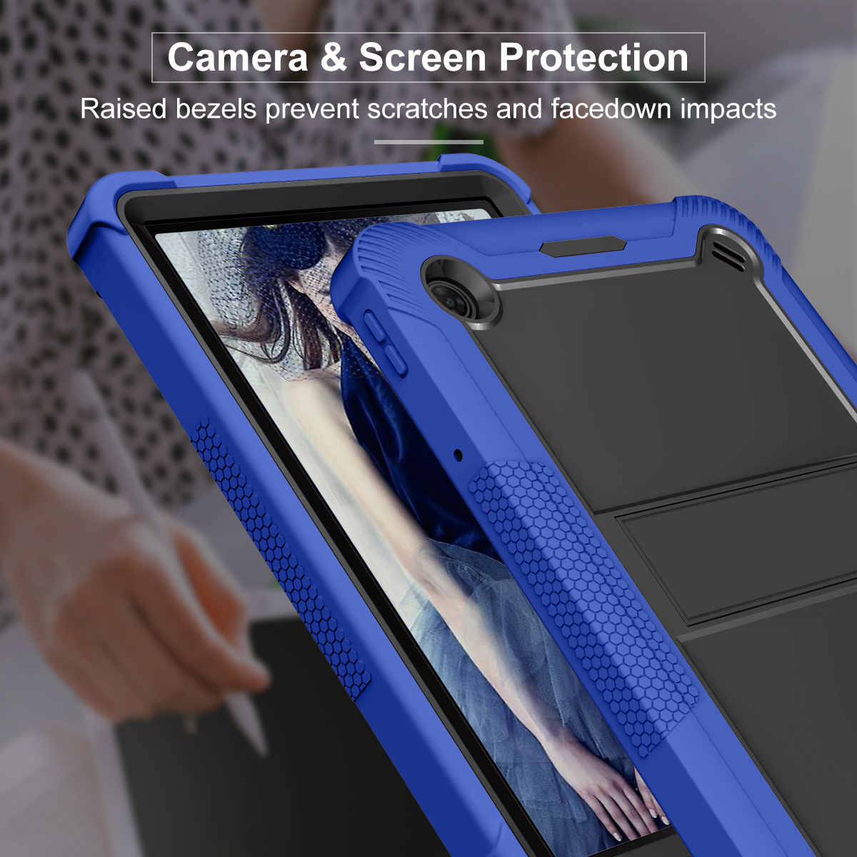 This blue heavy-duty case for Tab 10 5G is a reliable solution for kids and students. Triple-layer hybrid construction ensures impact resistance and classroom-grade durability.