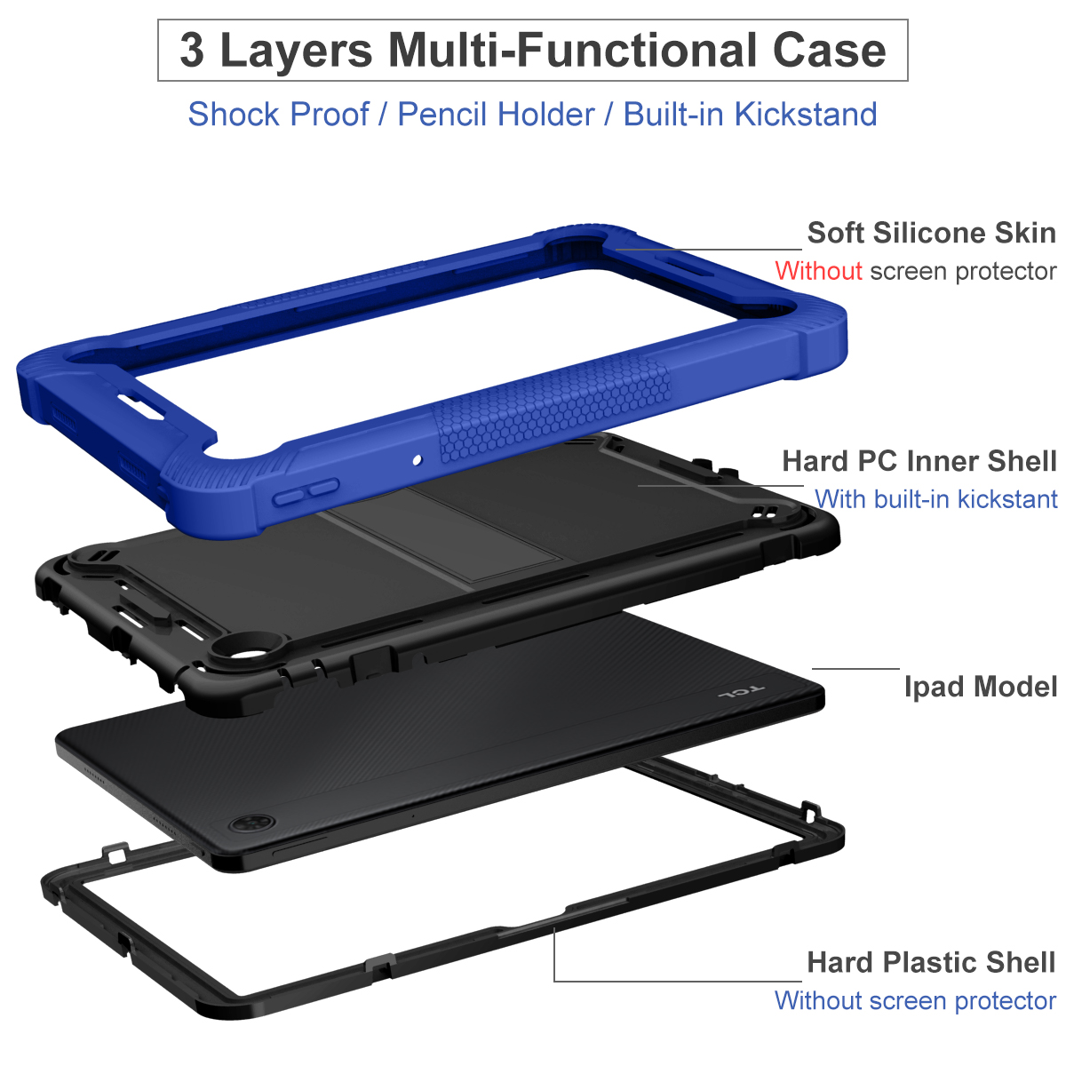 TOZIZO Blue Hybrid Triple-Layer Survivor Case for TCL Tab 10 5G - Impact Resistant Tablet Cover