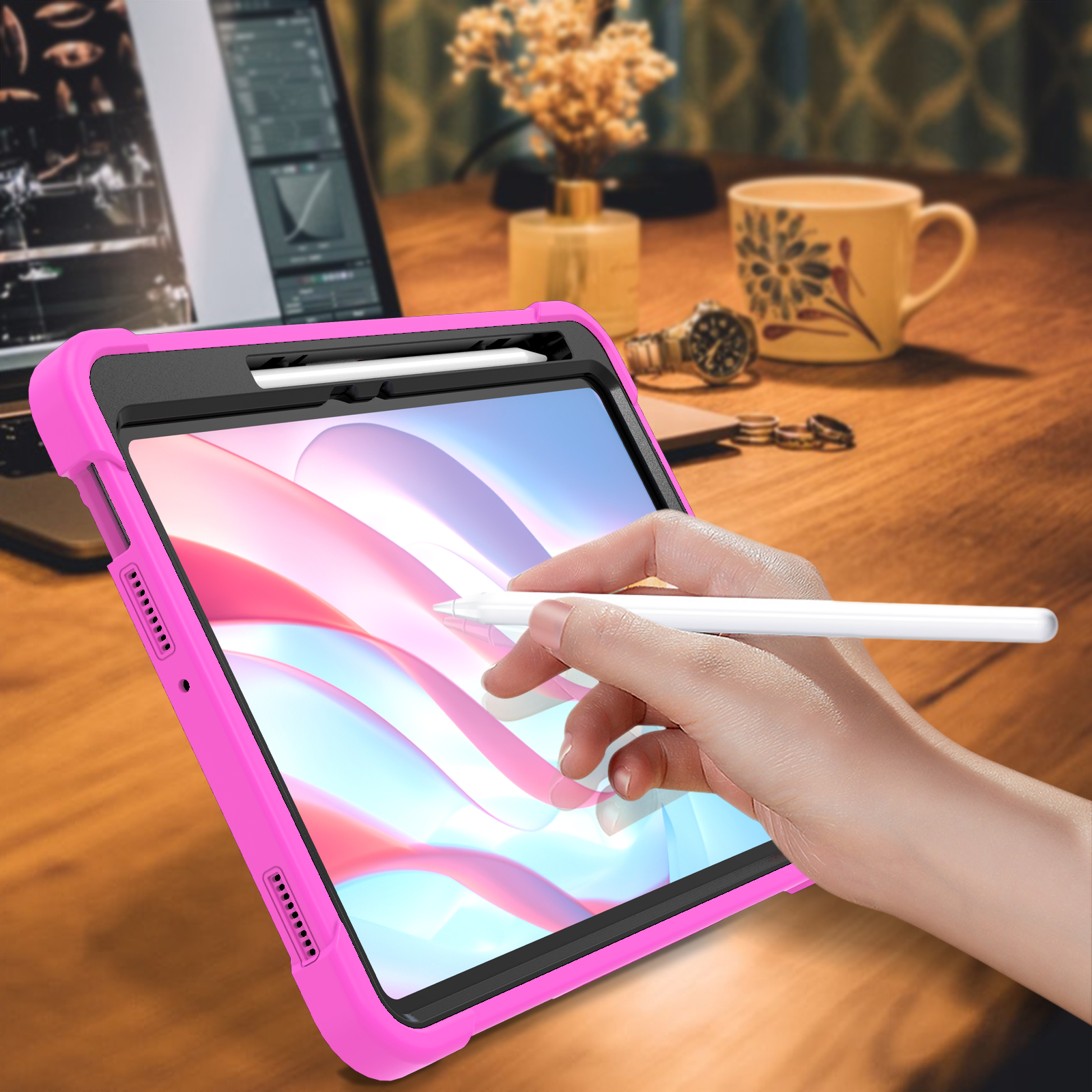 Triple-layer pink rugged protective case for Xiaomi Pad 8/8 Pro. Designed for classroom-grade safety, shock absorption, and impact resistance with foldable kickstand.