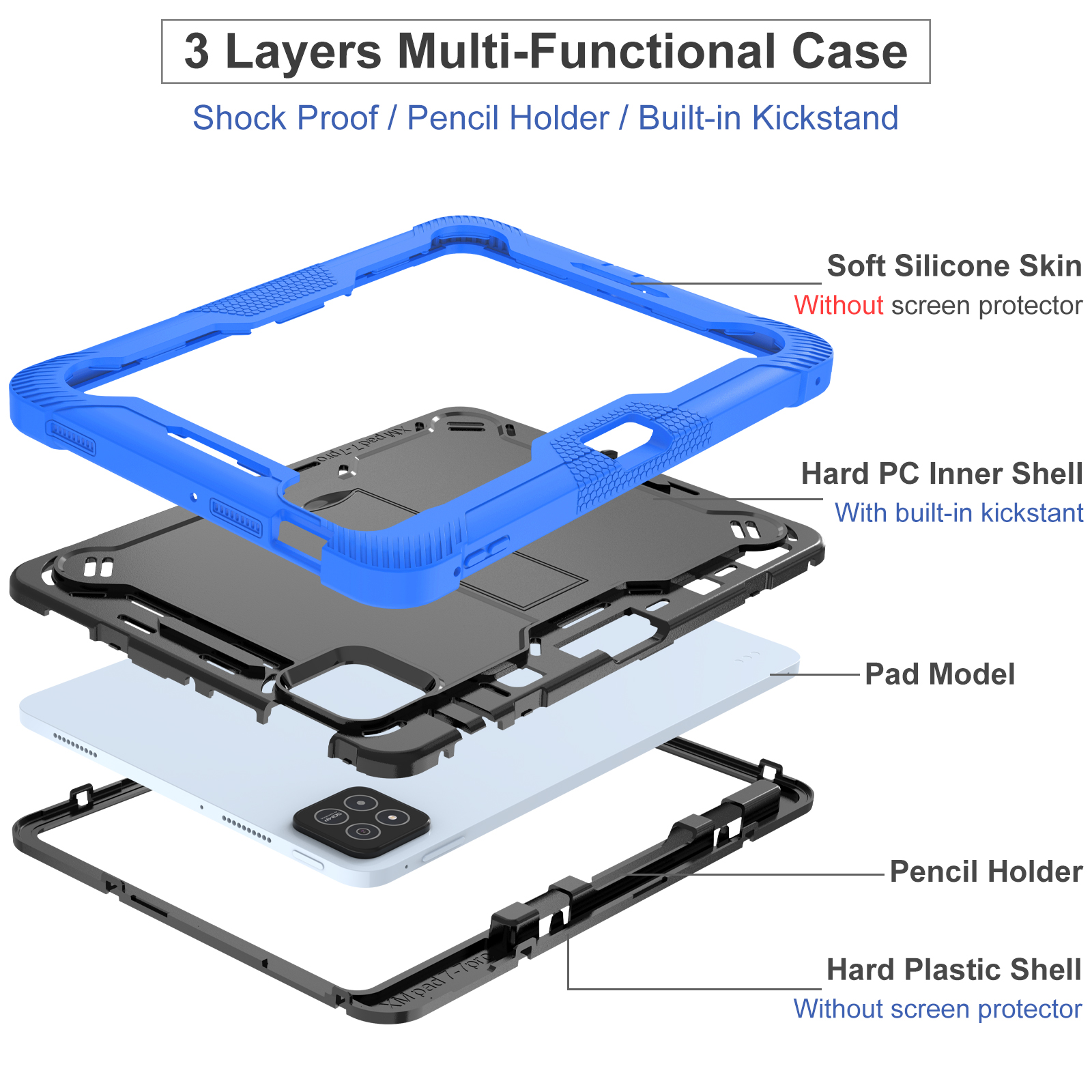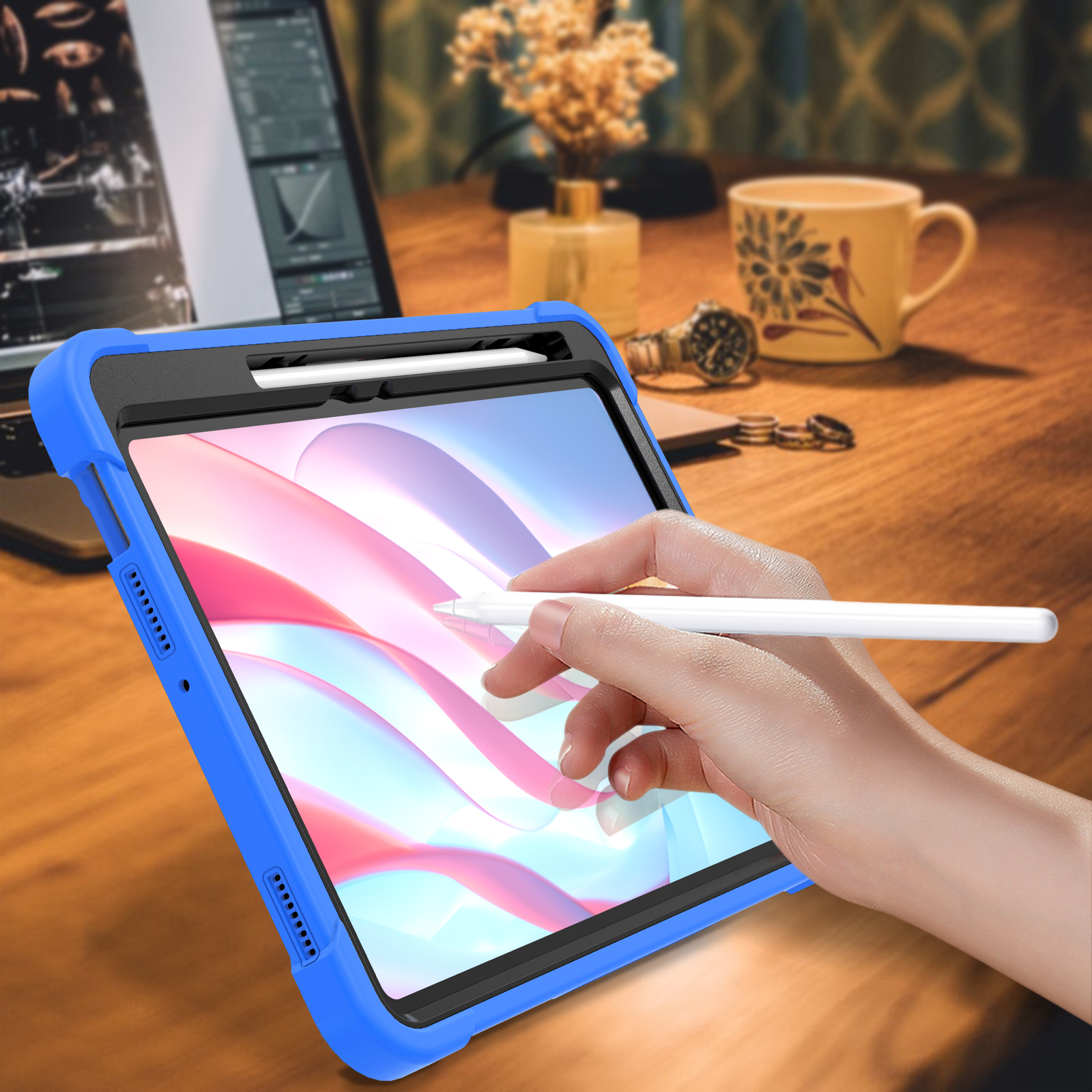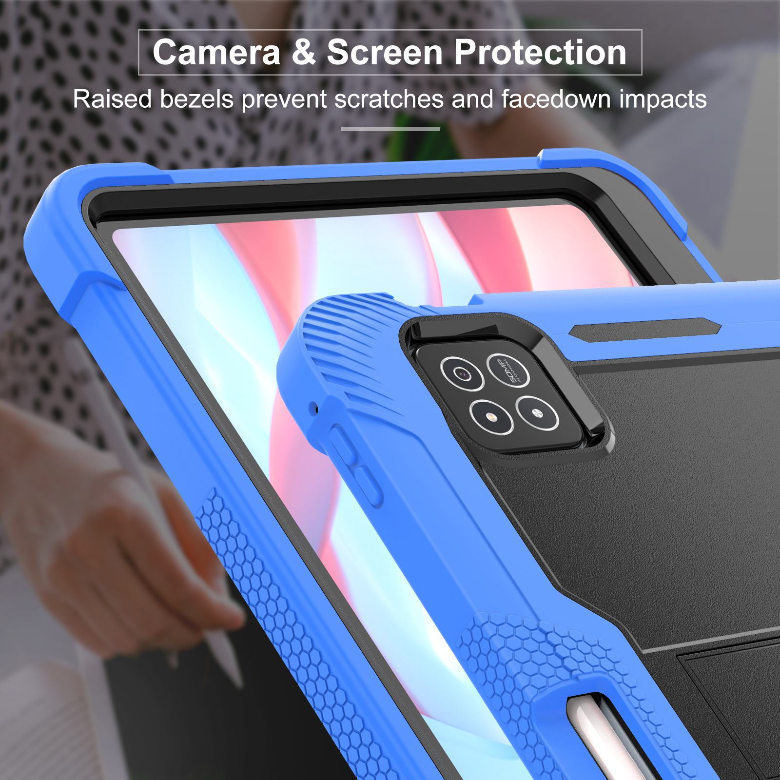 This blue combo case for Xiaomi Pad 8/8 Pro features triple-layer military-grade drop protection with kid-proof durability, a built-in kickstand, and school-ready rugged structure.