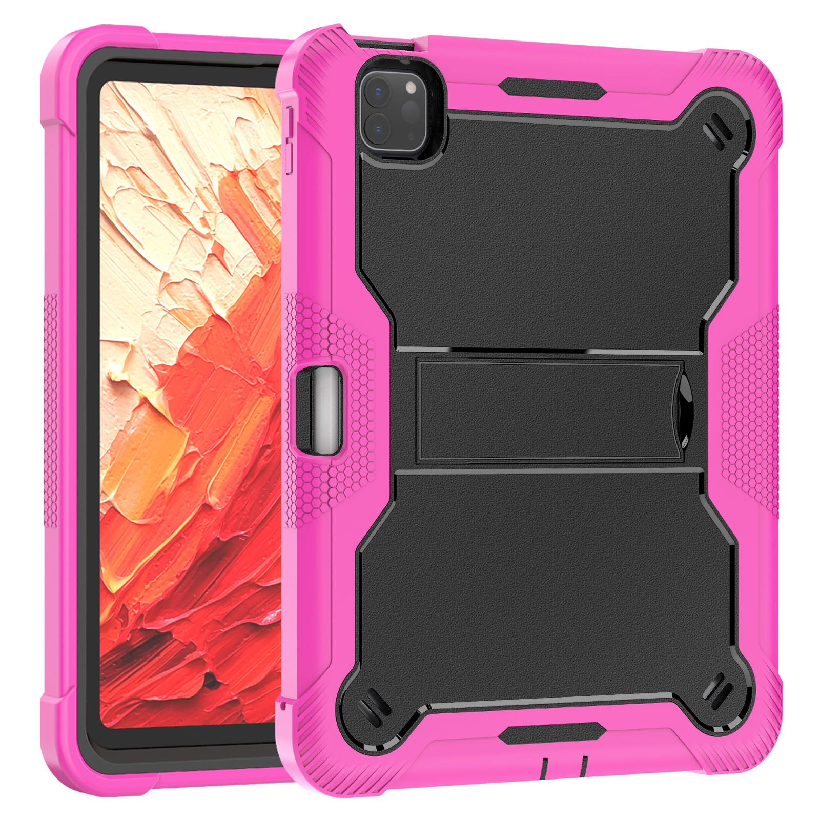 Designed for kids and families, this pink shockproof iPad Pro 11 case offers full-body 3-layer protection with silicone cushioning and stand. Built tough for drops, school, or home use.